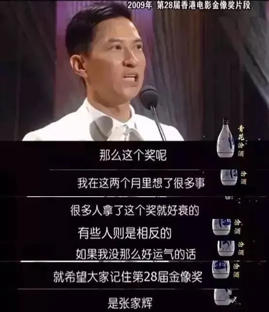 在金像奖的颁奖典礼上,张家辉感慨地说道,在他的演艺转化过程中,“途中都很孤独、很难捱”,“有些人拿到这个奖会很牛,有些人拿了奖去做了小贩,如果我那么不幸,属于去做小贩那一类,希望大家记得第28届(最佳)男主角是张家辉。”