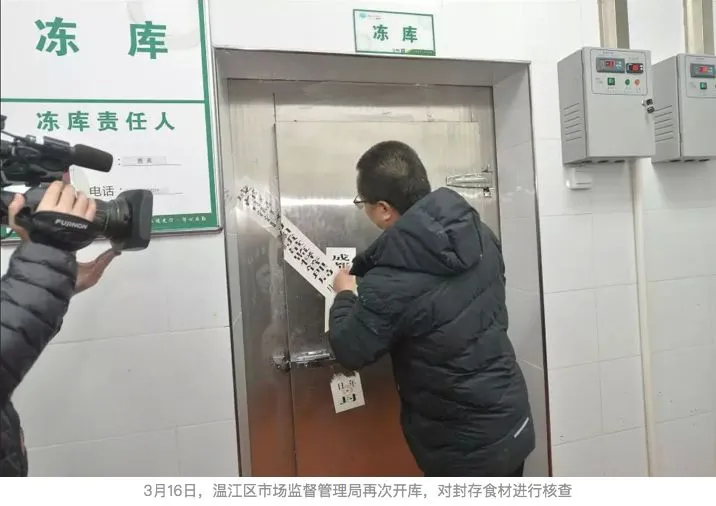 贺欣介绍,在检查厨房冻库时,调看厨房内监控视频后,发现有人疑似制作虚假食材图片,与网上炒作的图片相似。温江区市场监管局已将涉嫌犯罪线索移送公安机关。现场发布会还发布了两段视频。
