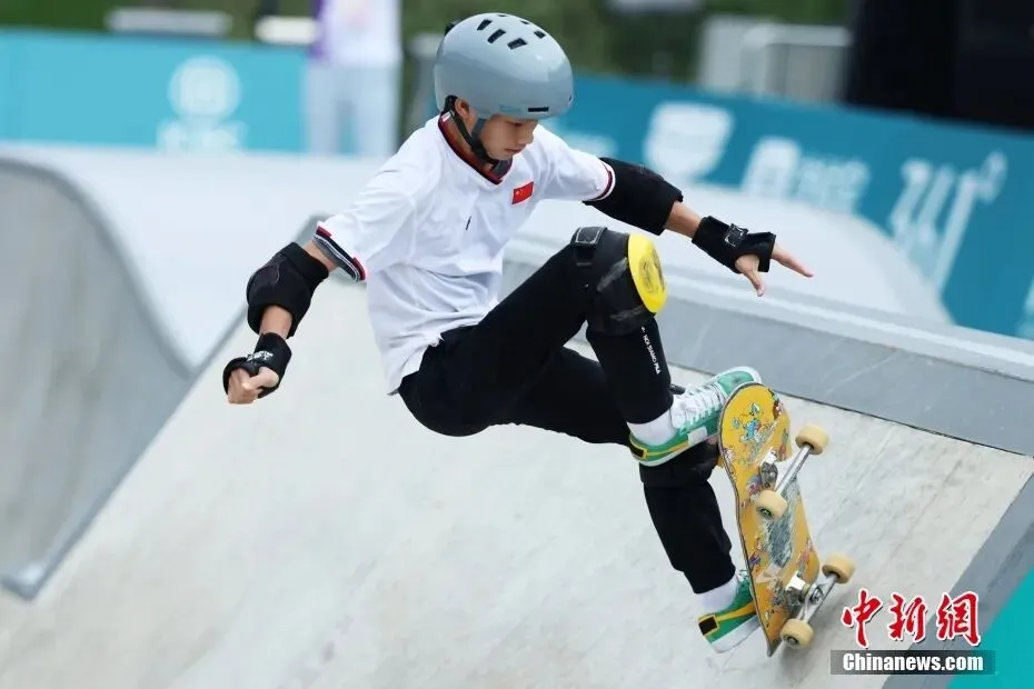 在滑板男子碗池决赛中,15岁小将陈烨以84.41分夺得金牌。