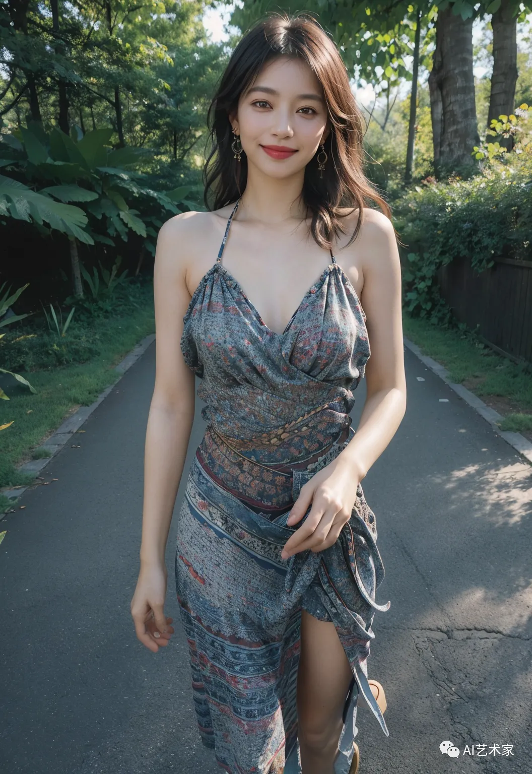 为了避免了在公园中尴尬的换衣服,增添更多的趣味性和变化,我们决定利用人工智能技术为她换上不同风格的裙子。