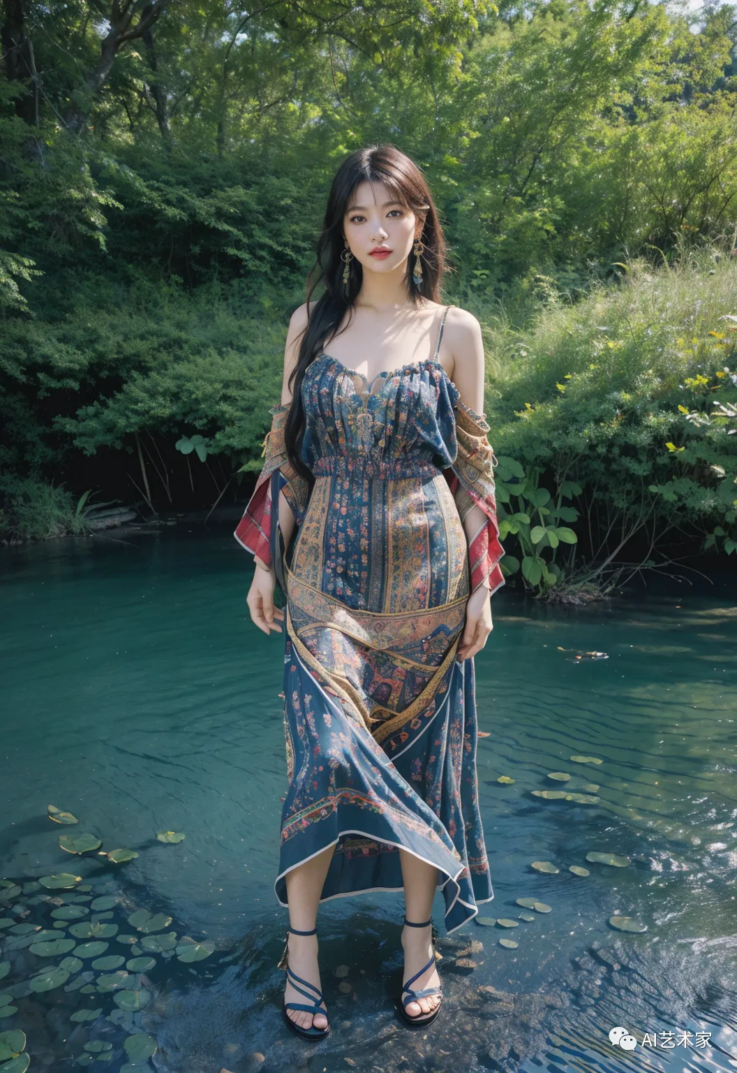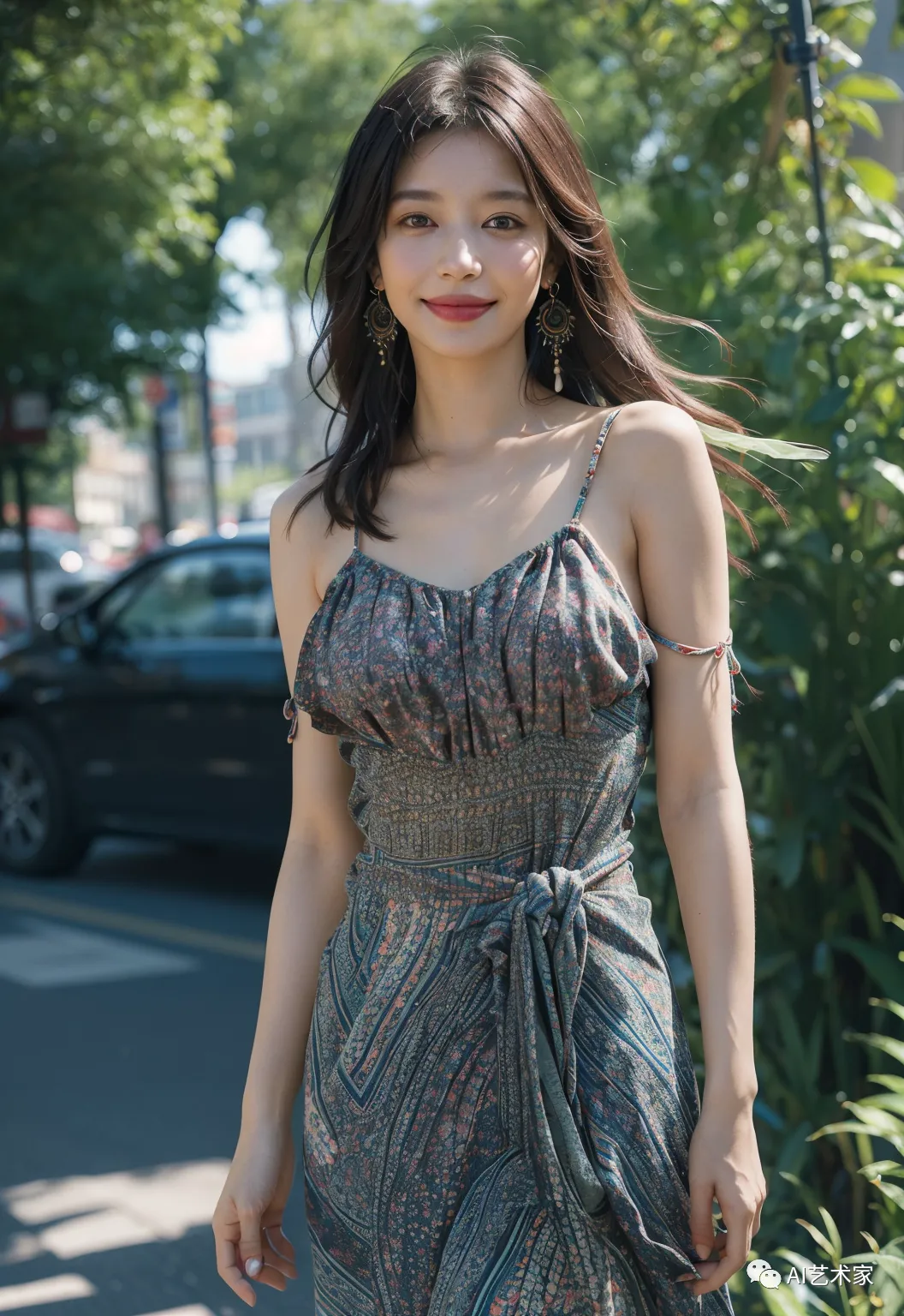更让我瞩目的是她身着的那条波斯米亚风格的连衣裙,让她看起来充满了神秘和自由的气息。
