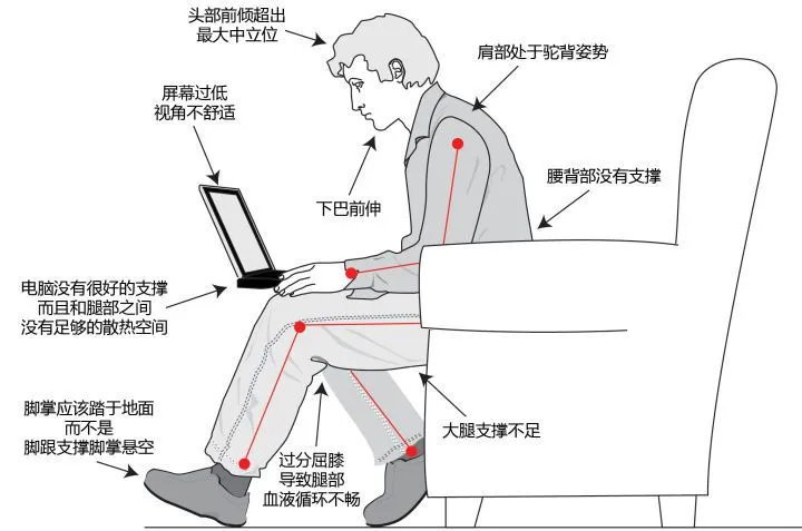 我们的上半身向前倾到恨不得扎进屏幕里,下半身又不能提供良好的支撑,就导致骨盆再次处于一个左右为难的状态,不得不以前倾的方式来保持平衡,好难啊!所以还是建议坐正坐直,选择合适的座椅和高度以及眼睛距离屏幕的距离。