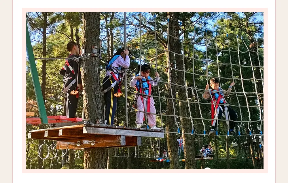 在林间绳索上摇晃前进,挑战平衡与勇气。