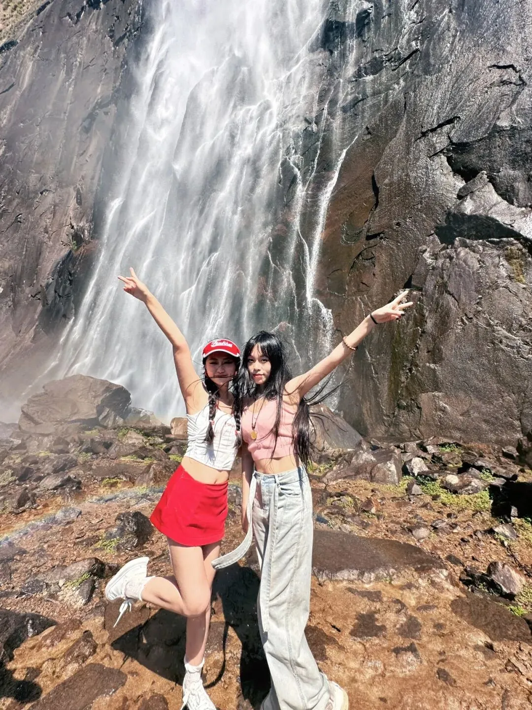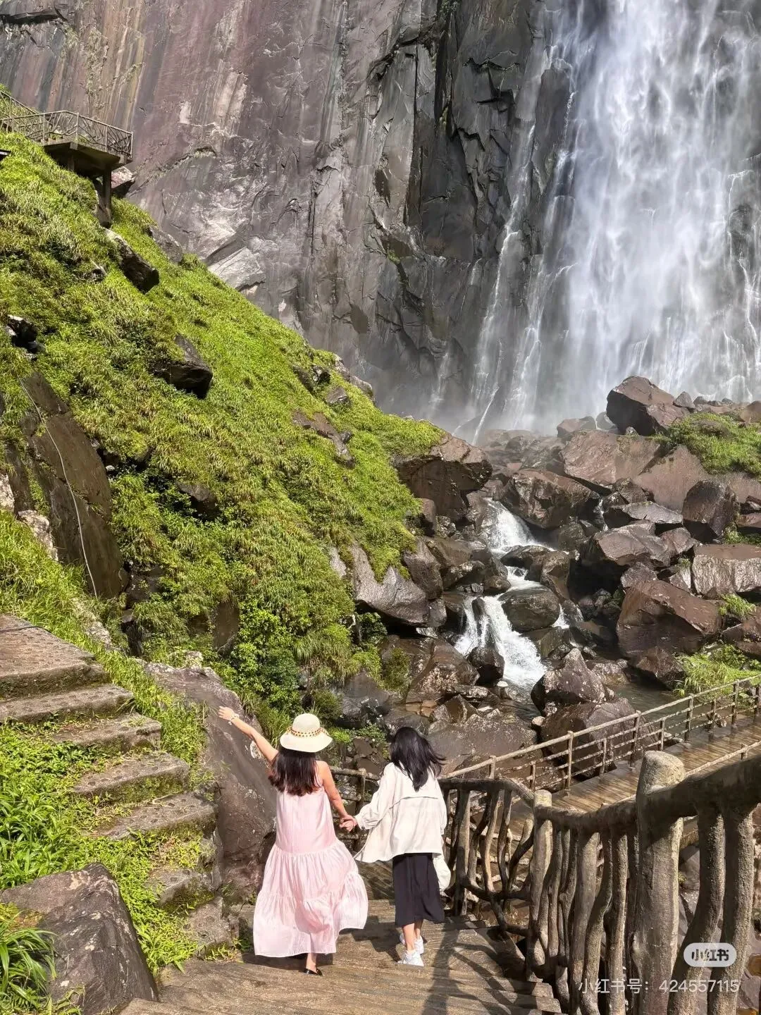 站在百米飞瀑前