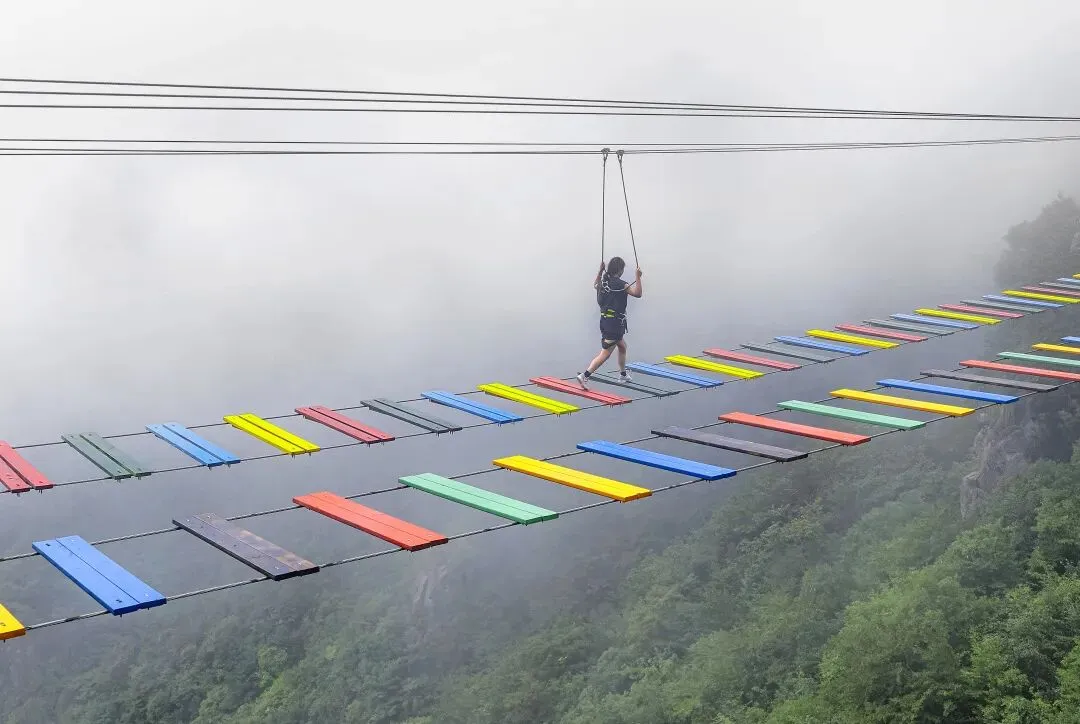 开放的悬崖乐园足以震撼华东,悬崖秋千 、水晶廊桥、天空之阶,云中漫道等……让你玩到脸红心跳,大呼过瘾