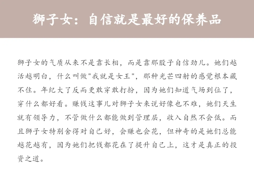 当前位置:首页>美女资讯>女神气质一流,越老越有钱的三个星座女