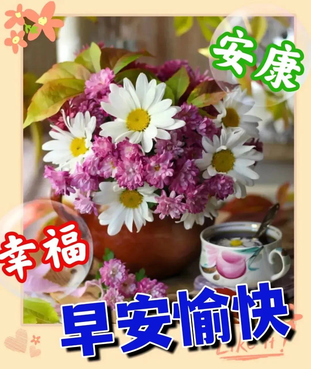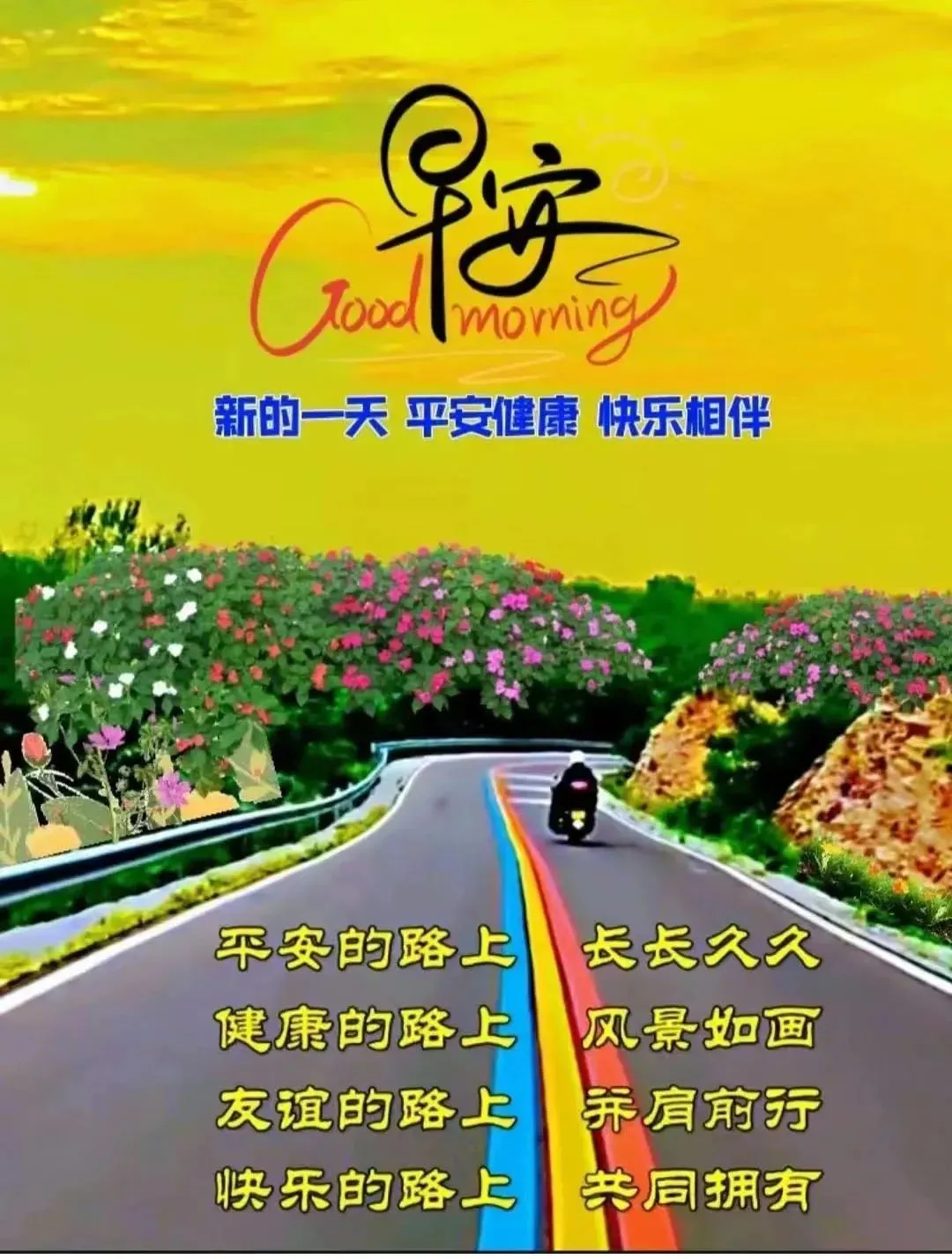 我的心意 就像清晨的阳光一样洒落 把快乐送入你的心底 我愿与你携手 随着清风起舞 把一天的快乐都高高举起 生活虽然有时会有风雨 但只要我们心中有阳光 就能照亮前行的路 早安 愿幸福与你同行 无论走到哪里 都能感受到温暖和关爱