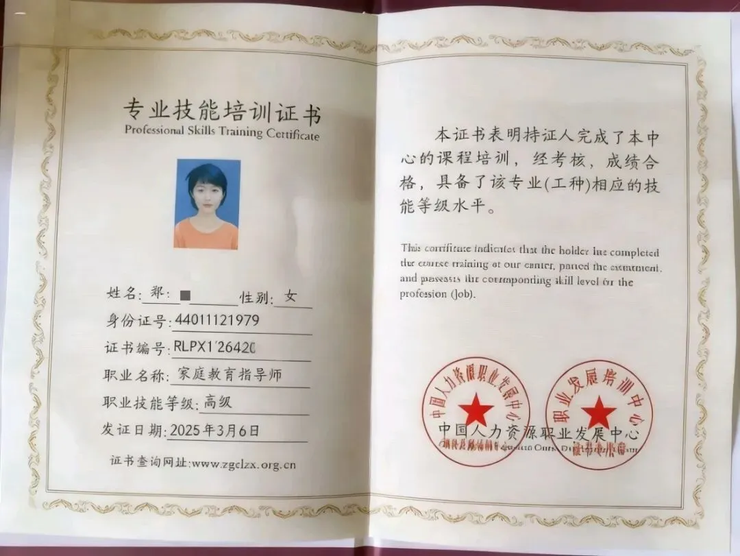 ❃ 特别说明:报名时另加1000元,即可申请家庭教育指导师证书。