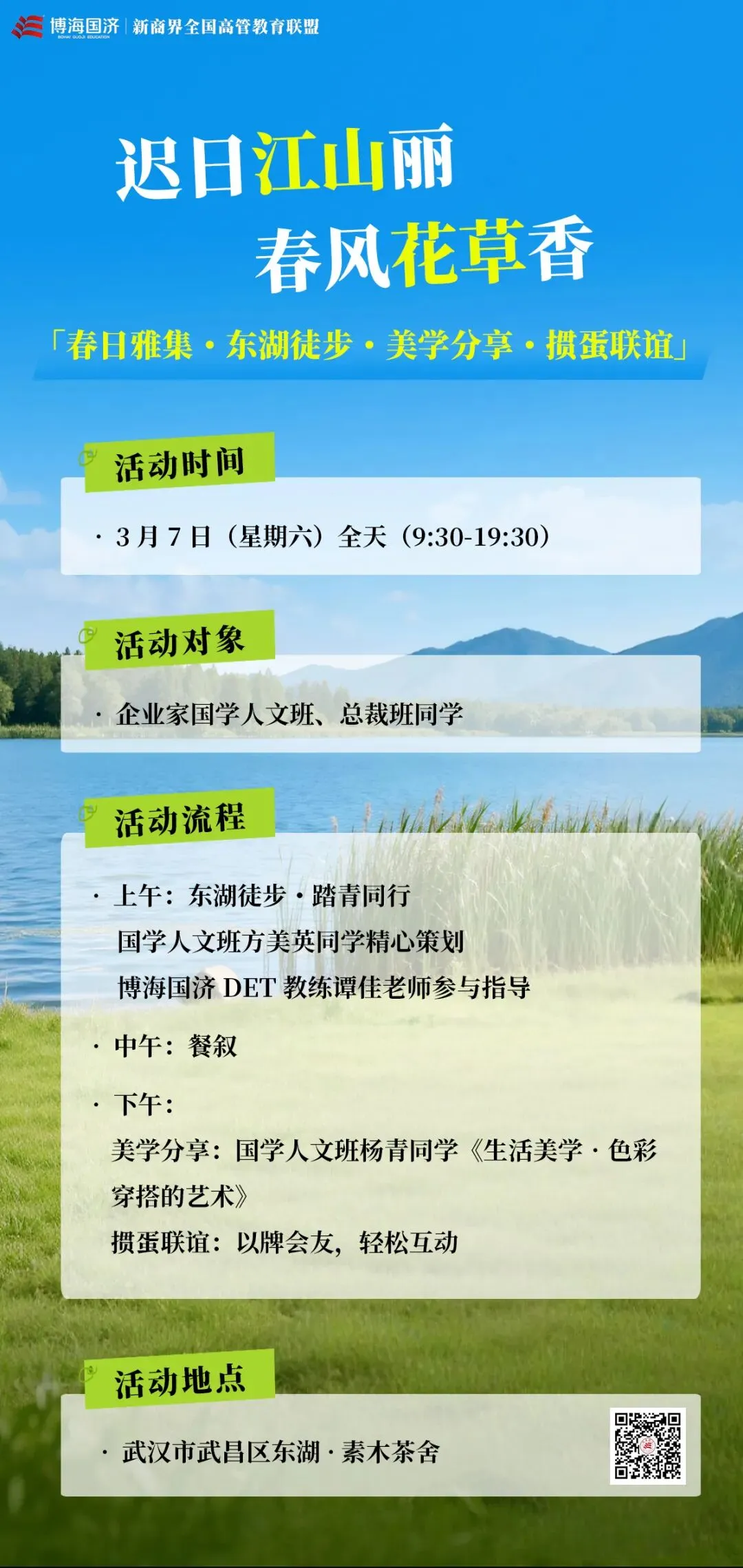 【女神节活动】春日雅集・东湖徒步・美学沙龙・掼蛋联谊