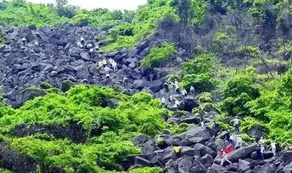 世纪冰川,覆卮山半山腰上,三条由重重叠叠、浩浩荡荡的巨大鹅卵石汇成的石河呈“川”字形排列,此为第四纪冰川遗迹,蔚为壮观。而那夹缝生存的桃红柳绿,被柳枝苗条,被香味裹笑,被前后簇拥。蕊寒香冷,苔芜绿染,古木沧桑,溪水潺潺,说不出的清幽。攀爬在石浪,怪石水特,品着石碑上古老的文字,心事更觉清浅。