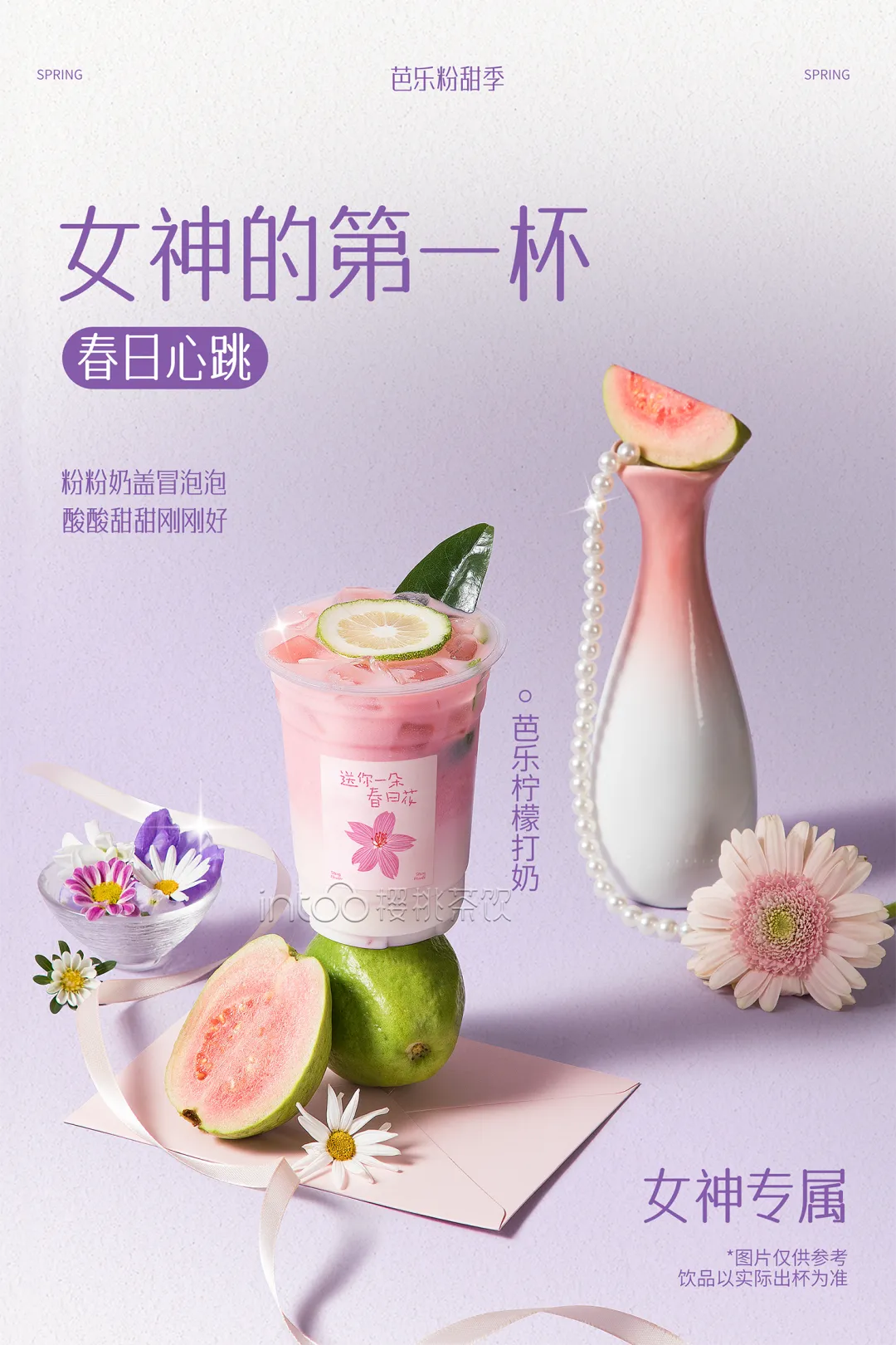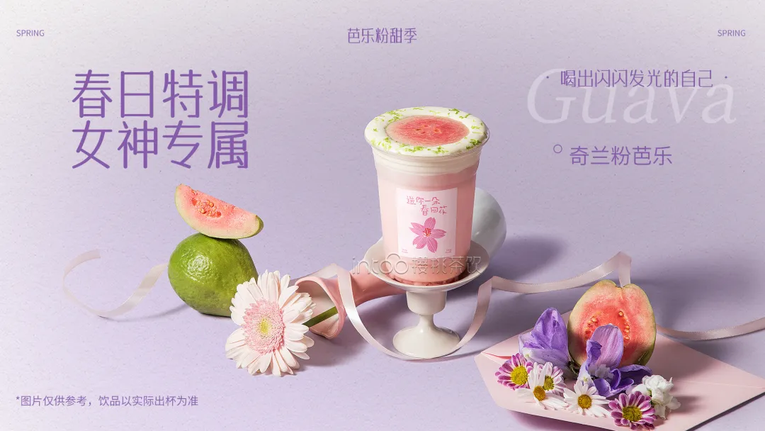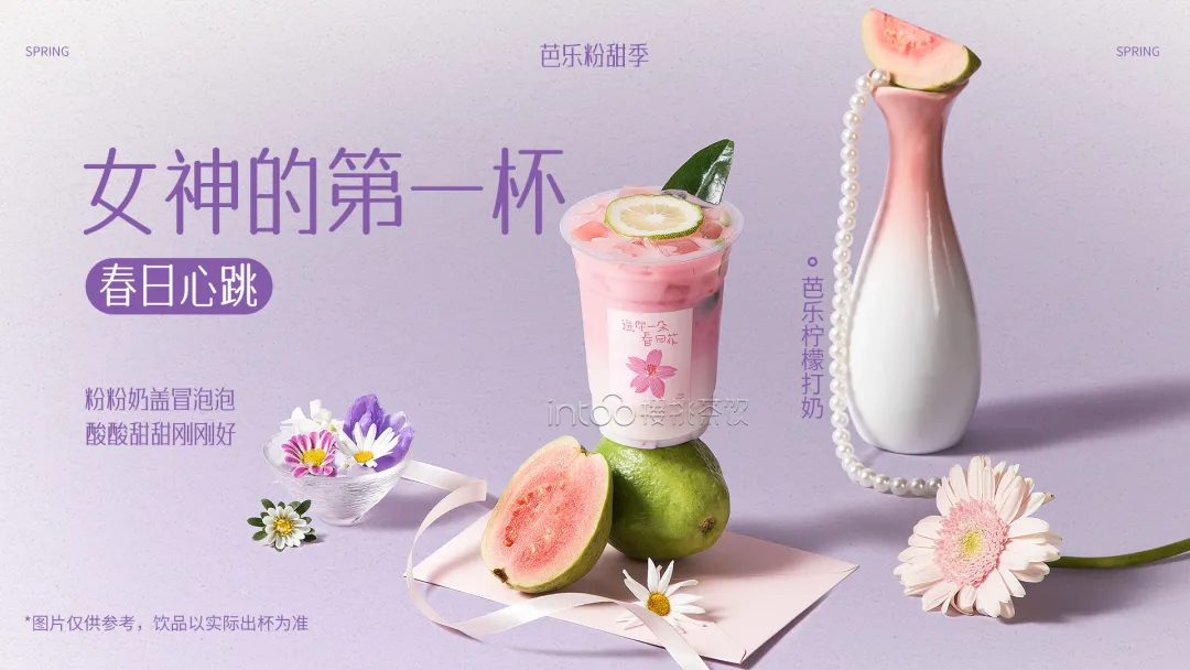 今年女神节,春天的第一口甜是芭乐给的浪漫,粉嫩颜值,独特果香,专属女生的节日,当然要用最粉、最甜、最清爽的芭乐饮品。