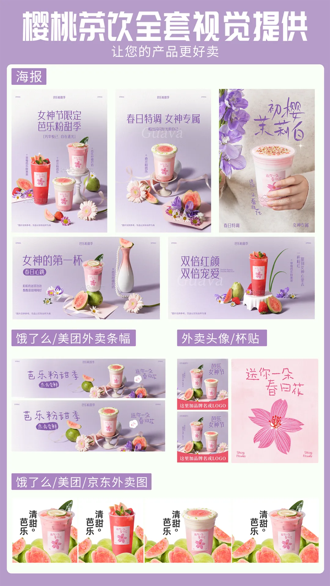 全套素材都给大家准备好了,联系销售伙伴即可获取最新视觉,今日下单2.0白砂糖芭乐果酱,限时赠送女神节限定杯贴50贴。