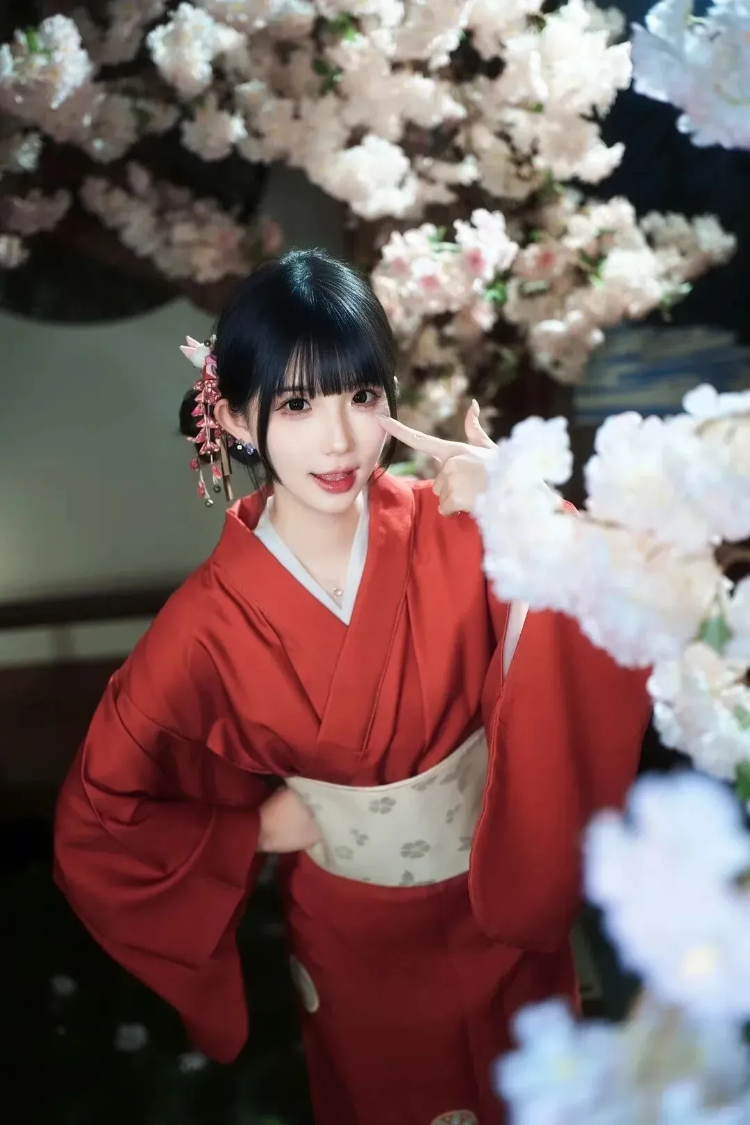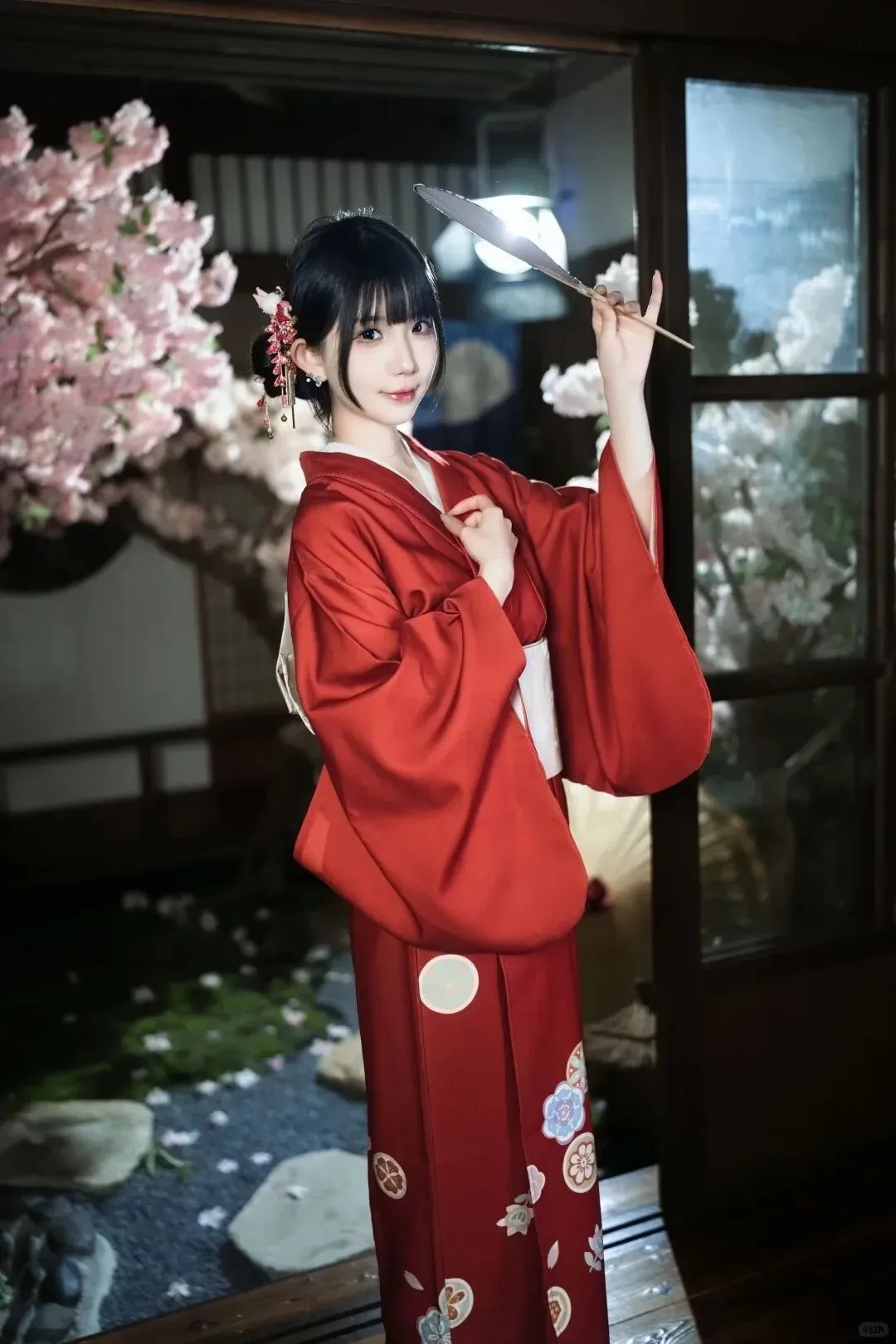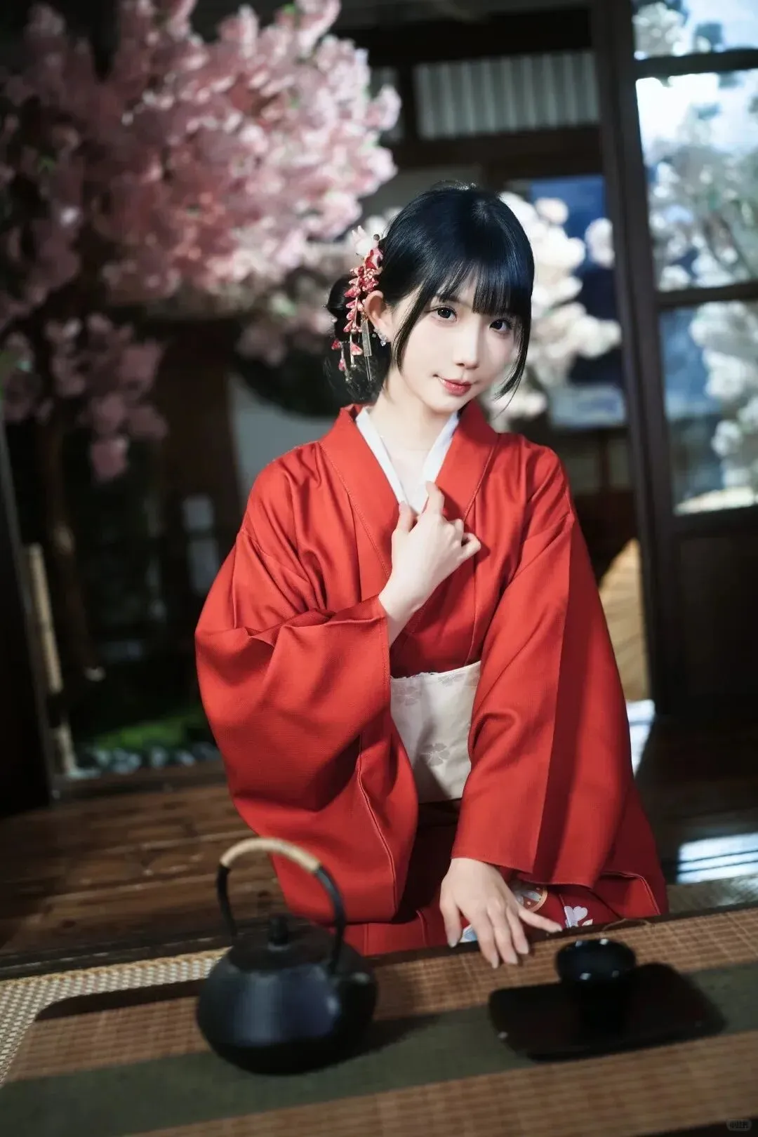 当前位置:首页>美女资讯>樱庭红妆|正红和服和风少女写真