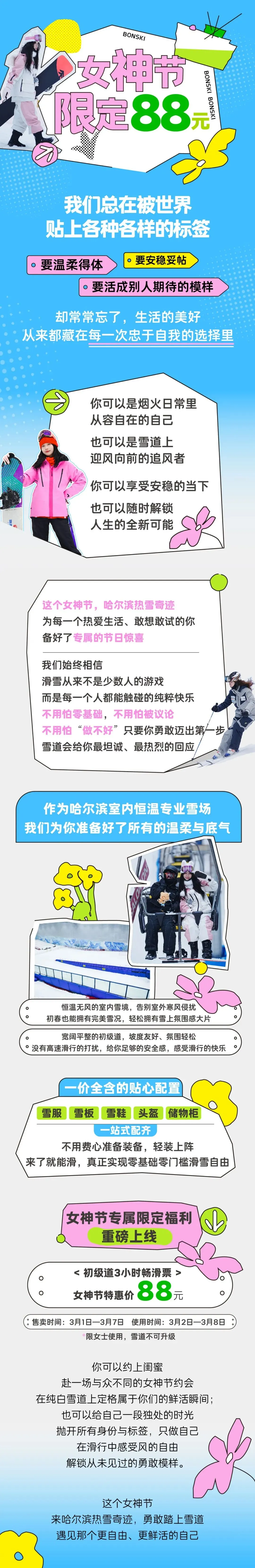 当前位置:首页>美女资讯>女神节限定|88元滑雪局!你不必完美,只需勇敢迈出第一步,做从容自在的自己!