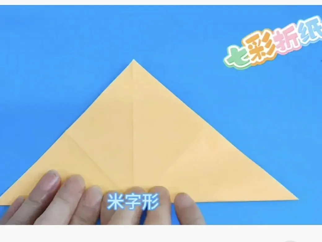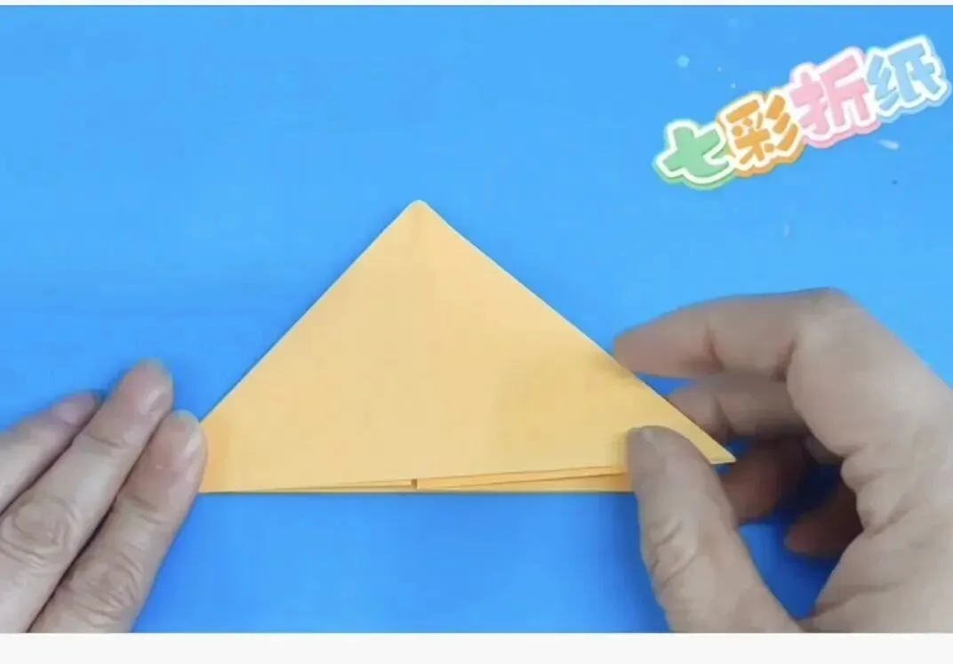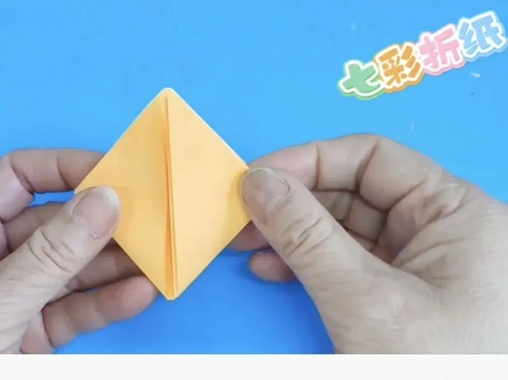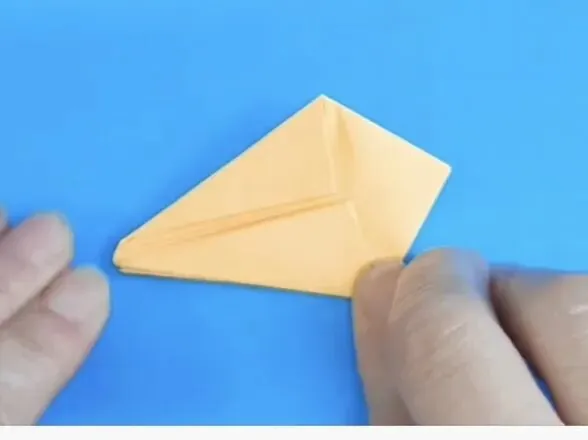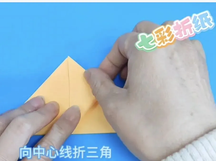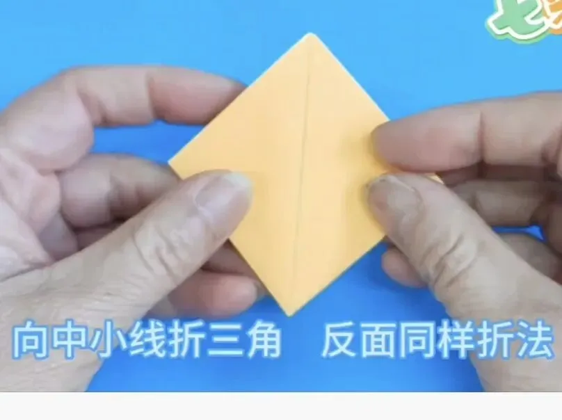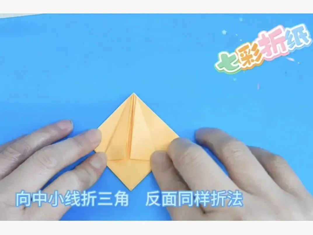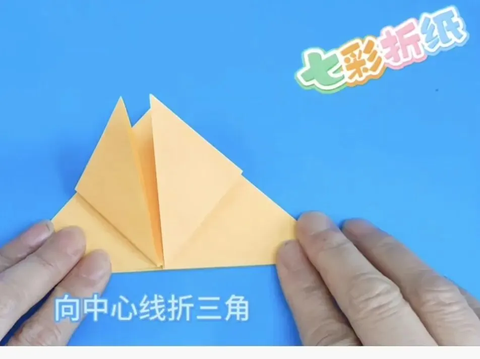 4️⃣向中心线折两个三角,反面同样折法