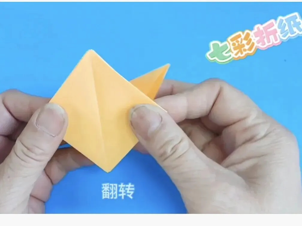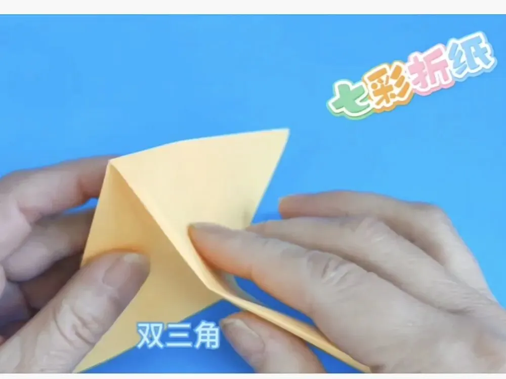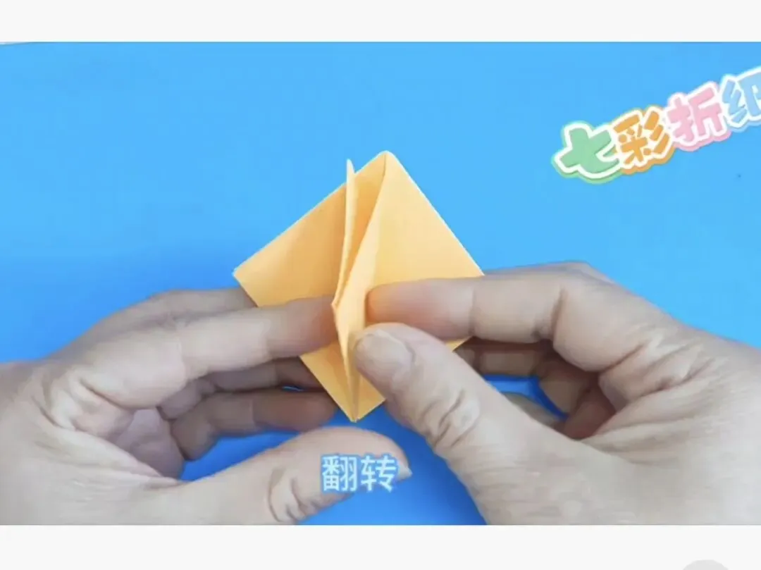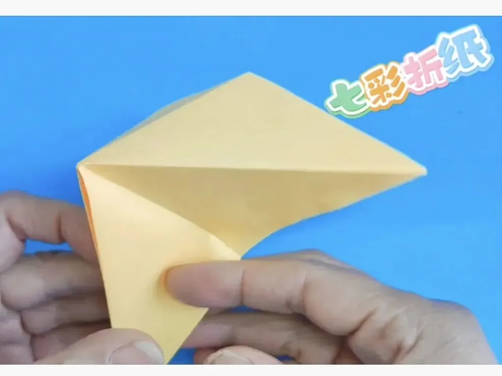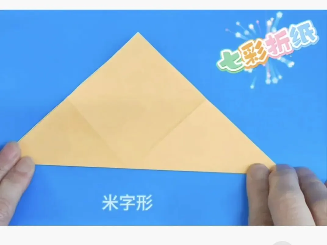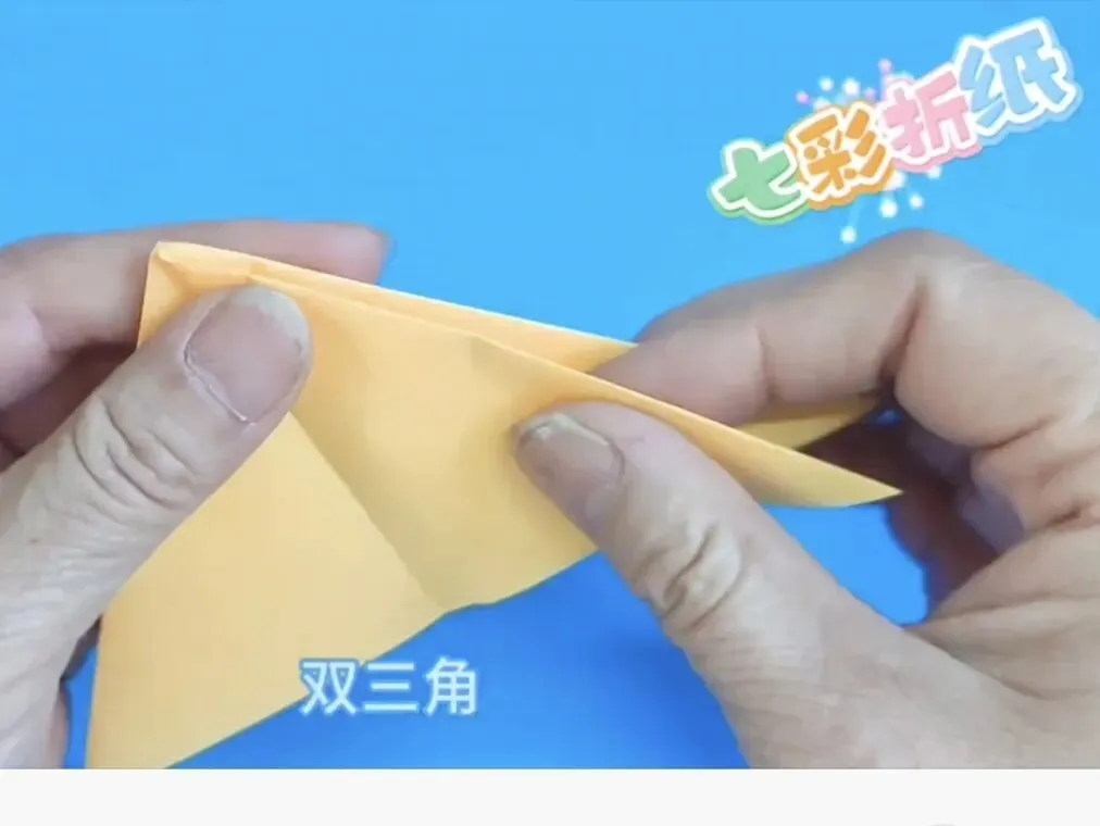4️⃣向中心线折两个三角,反面同样折法