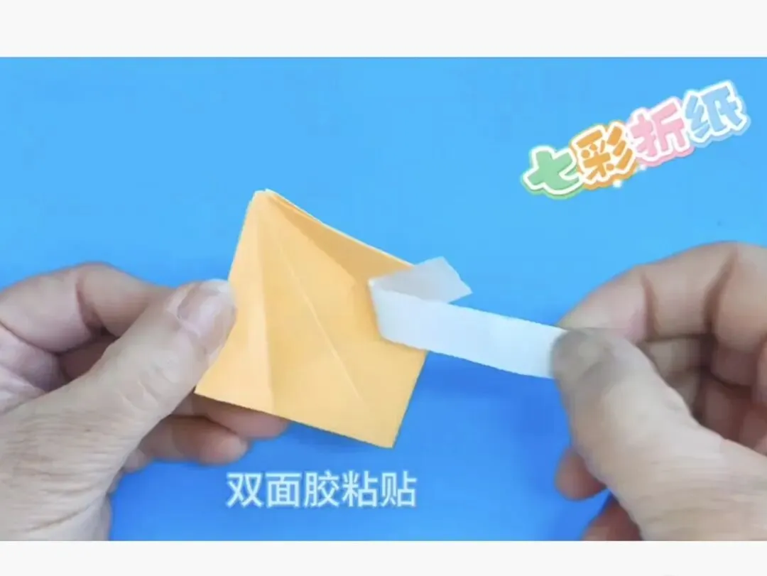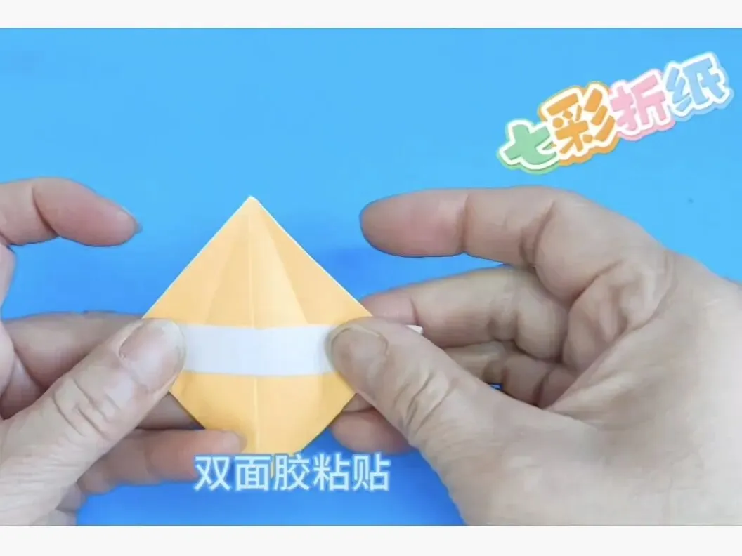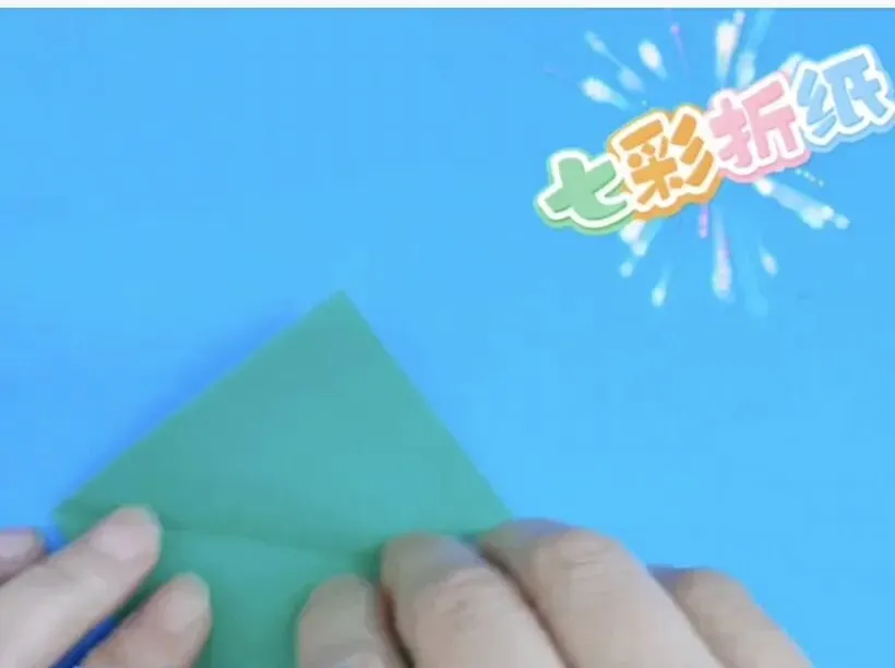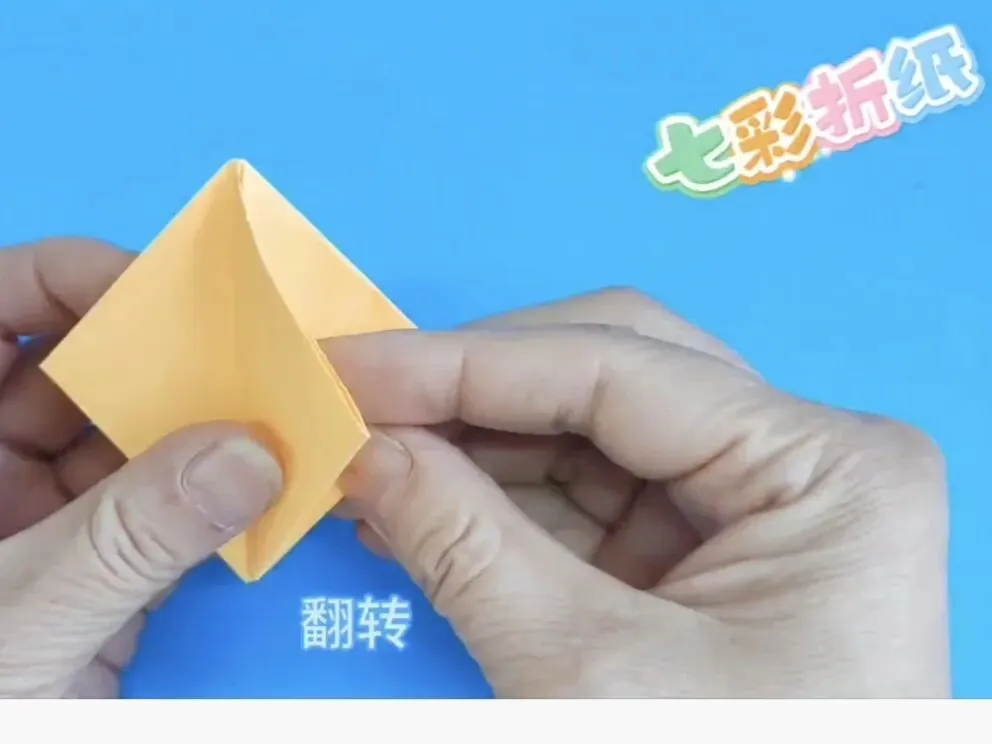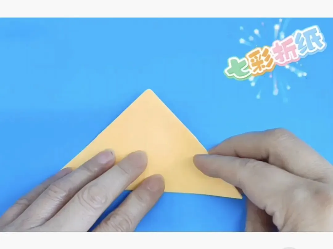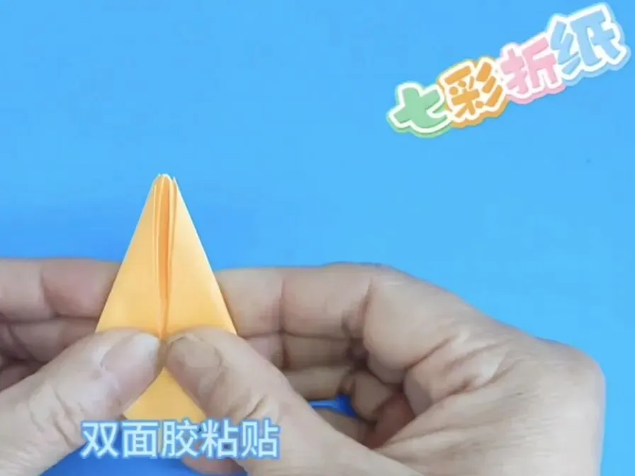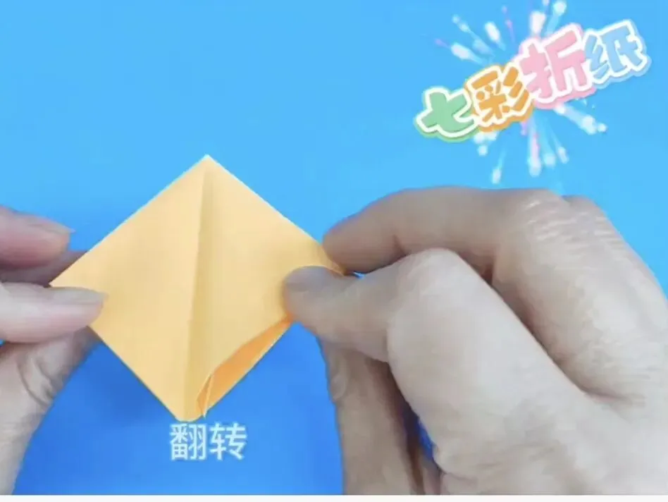 4️⃣向中心线折两个三角,反面同样折法
