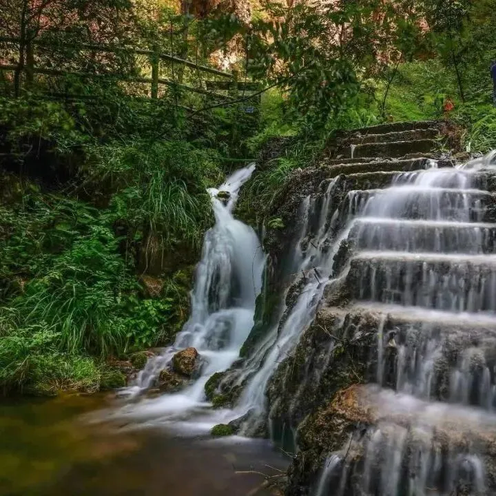流水萦绕,三步一潭,五步一瀑,大小不一的瀑布,悠然倾泻,沁人心脾的凉意与清新空气交织在一起,让你享受清凉、感受自然。