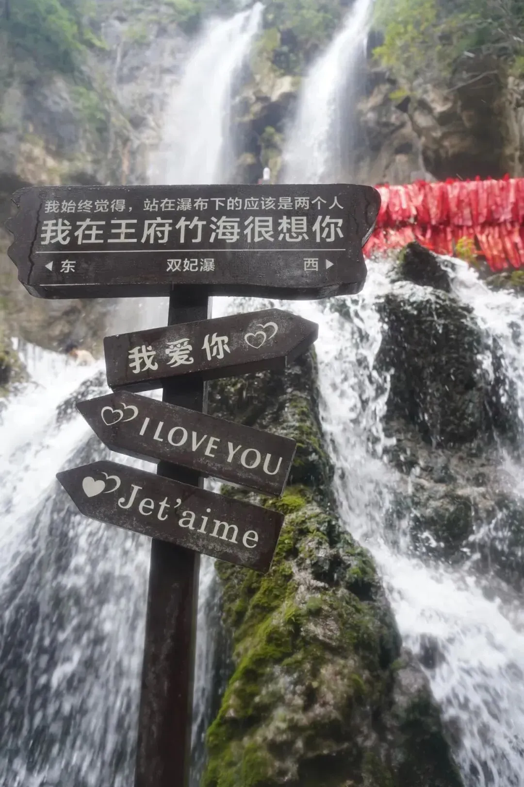 不少情侣和夫妻在这瀑布下拍照打卡,王府竹海的瀑布有幸见证了无数的爱情故事,渲染了无数的浪漫氛围。