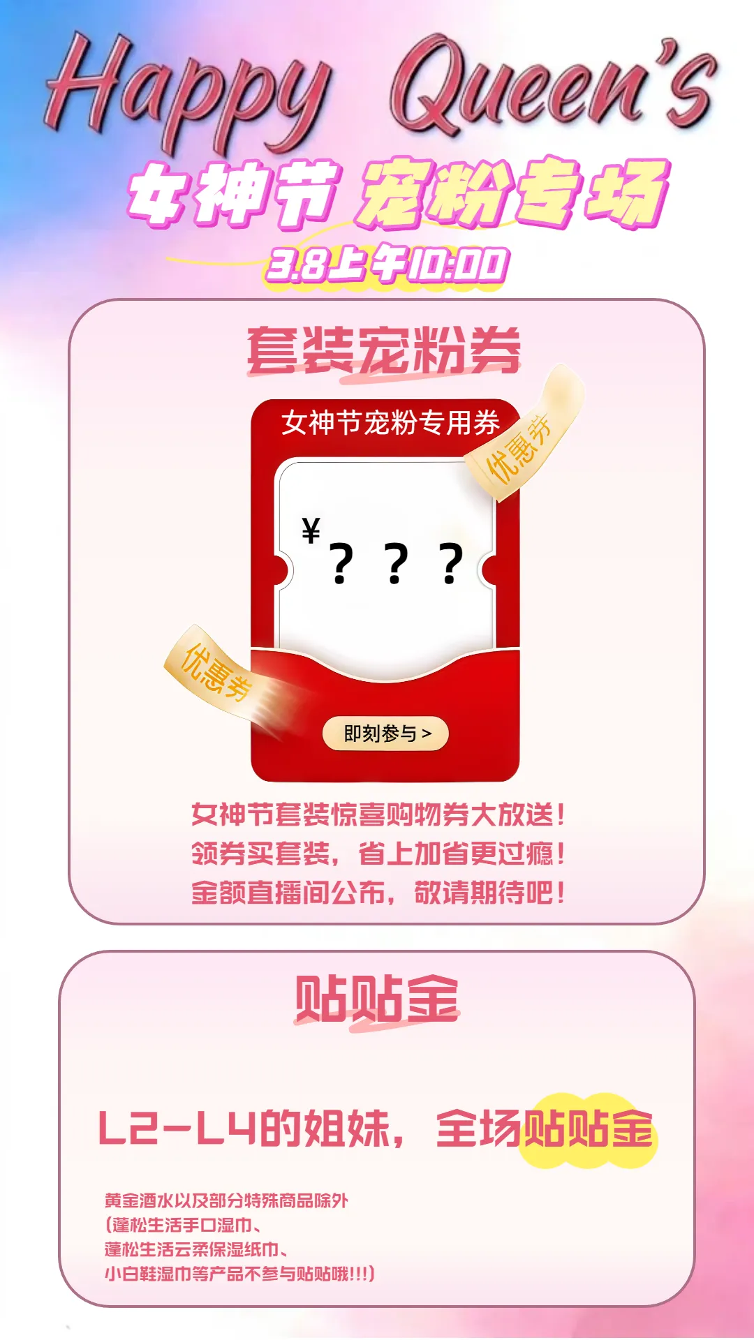 NO.3 专属宠粉·套装叠加惊喜券为了让大家买得更爽,我为特定热门套装申请了“女神节限定宠粉券”!领券再下单,价格直接打下来,这波羊毛必须薅!