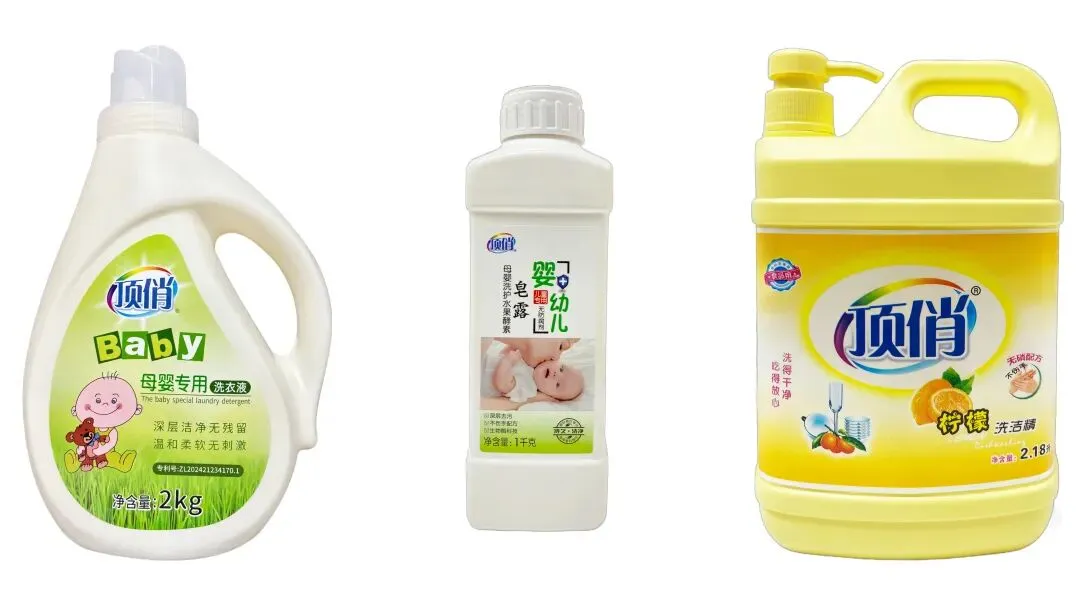 顶俏洗衣液采用多酶酵素技术,获国家生态环境部环保认证,无磷无荧光剂无增白剂。