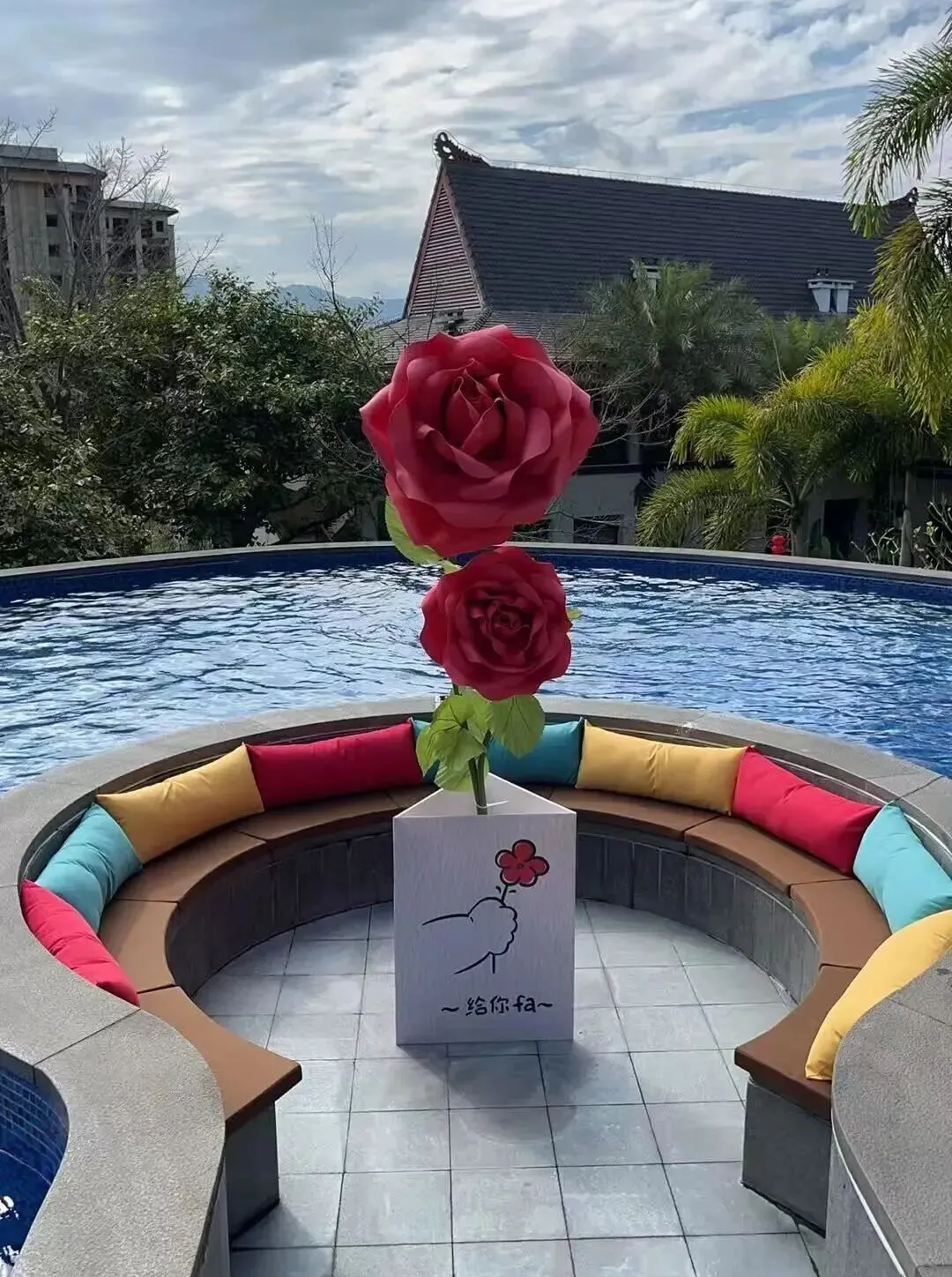 园区 玫瑰池 每日变身 花瓣红酒池