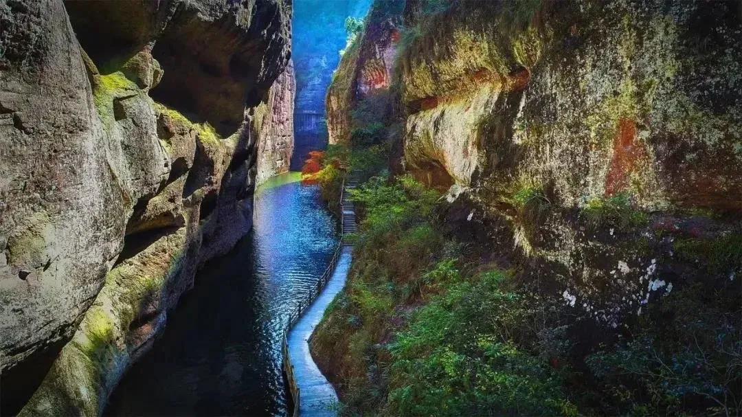 8:00早餐后,乘车前往泰宁,游览【九龙潭】九龙潭景区位于泰宁世界自然遗产、泰宁世界地质公园核心区,因有九条山泉溪涧汇聚而成的泉潭而得名。景区方圆 15 平方千米,融合了“湖、溪、山、谷、岩、峰、沟”的精华,分水上游览和陆地栈道游览。游览方式丰富,您既可乘筏穿越“中国最长的水上一线天”、“水上隧洞”,去俯瞰水的清丽,也可以信步抵达“水天玻璃栈道”,去体验玻璃栈道的水、秀、幽、奇的峡谷情怀。境内植被茂盛、峡谷纵横、丹霞绝色;尤以山水交融、谷静清幽、野性十足而闻名。四季花卉各不相同,春季的映山红、苦苣苔,夏季的野百合,秋季的黄花菜,冬季的红叶枫,均给人以不同的视觉美感。景区一年四季水源不断,老少皆可游,晴雨皆可游。被誉为“水上丹霞的精品”、“丹霞山上微缩明珠”。