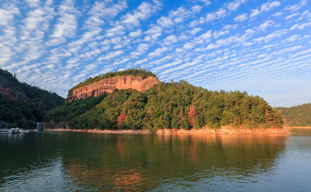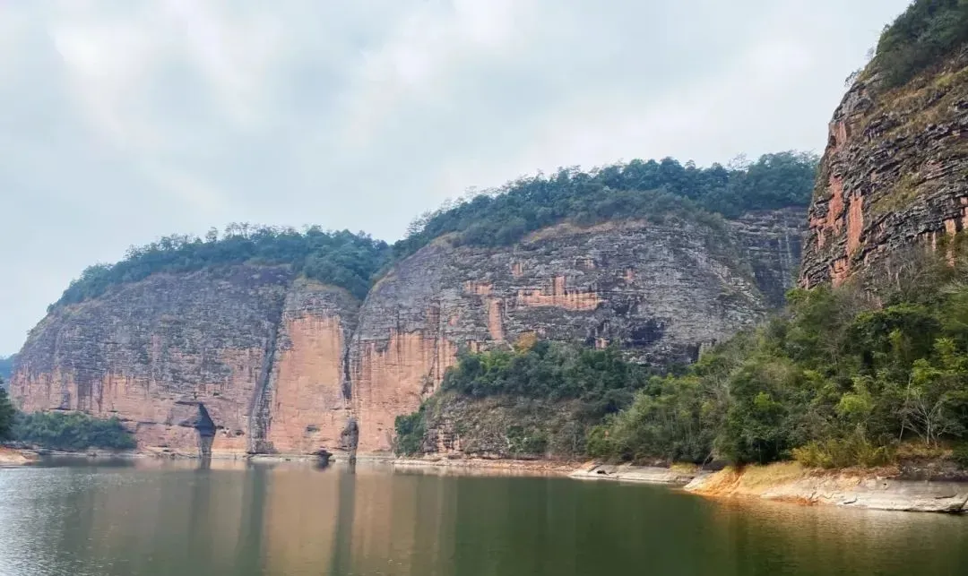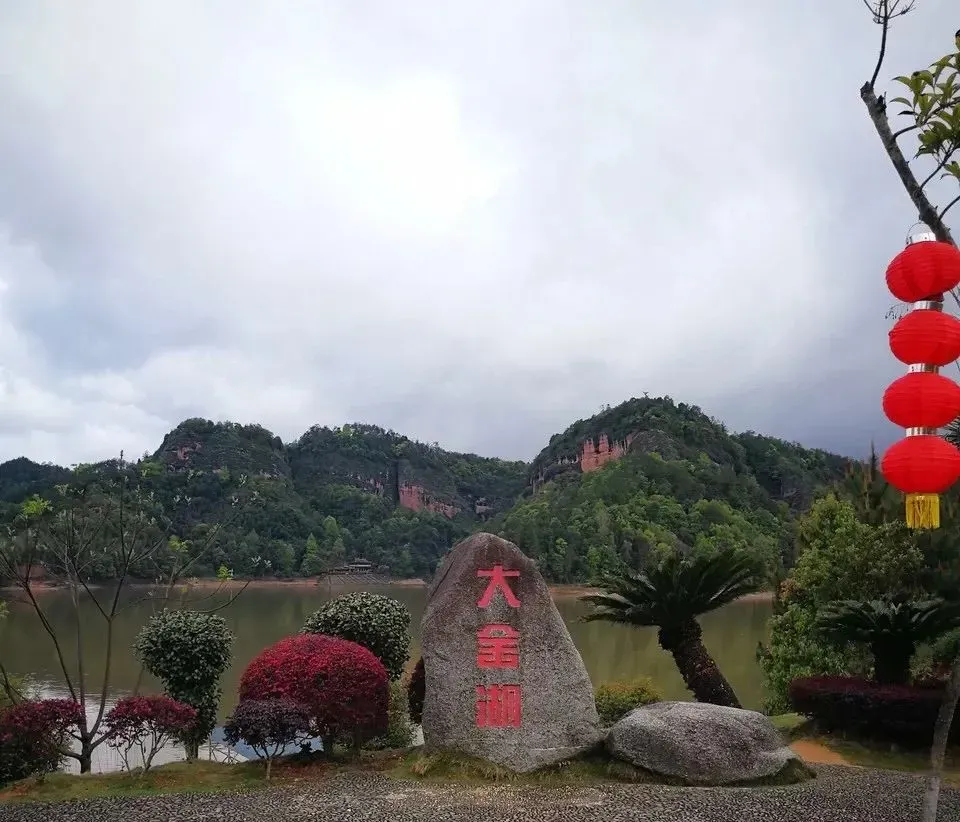 下午游览 AAAAA 级景区【大金湖】可观天迹水帘、野趣源(可登陆)、尚书墓、甘露寺(有南方悬空寺之称,可登陆)、鸳鸯湖、情侣峰、天书真迹、赤壁丹崖、陆上斜线天(可登陆)浩瀚幽深的湖水与千姿百态的丹霞地貌完美结合,如百里风光长卷,山水交融,如诗如画,被誉为“天下第一丹霞湖山”。适时返程