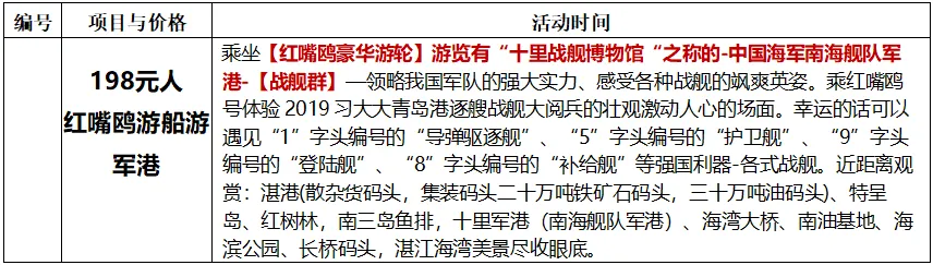 第二天 酒店--推荐红嘴鸥游船--登军舰--游军博--东海岛--酒店