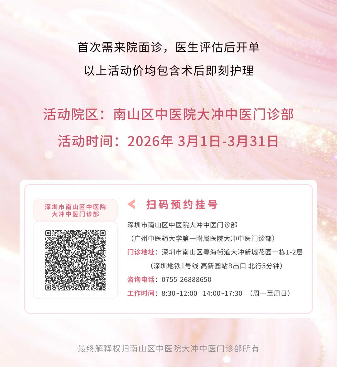 当前位置:首页>美女资讯>南山区中医院皮肤科女神节约“惠”返场