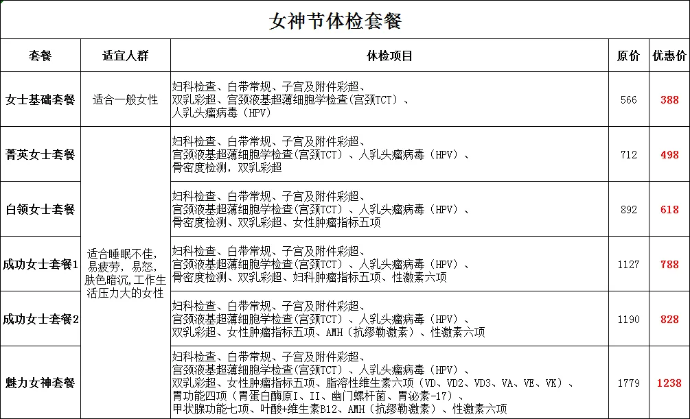 除免费乳腺癌筛查外,松阳县人民医院同步推出女神节优惠体检套餐,为女性健康加码!