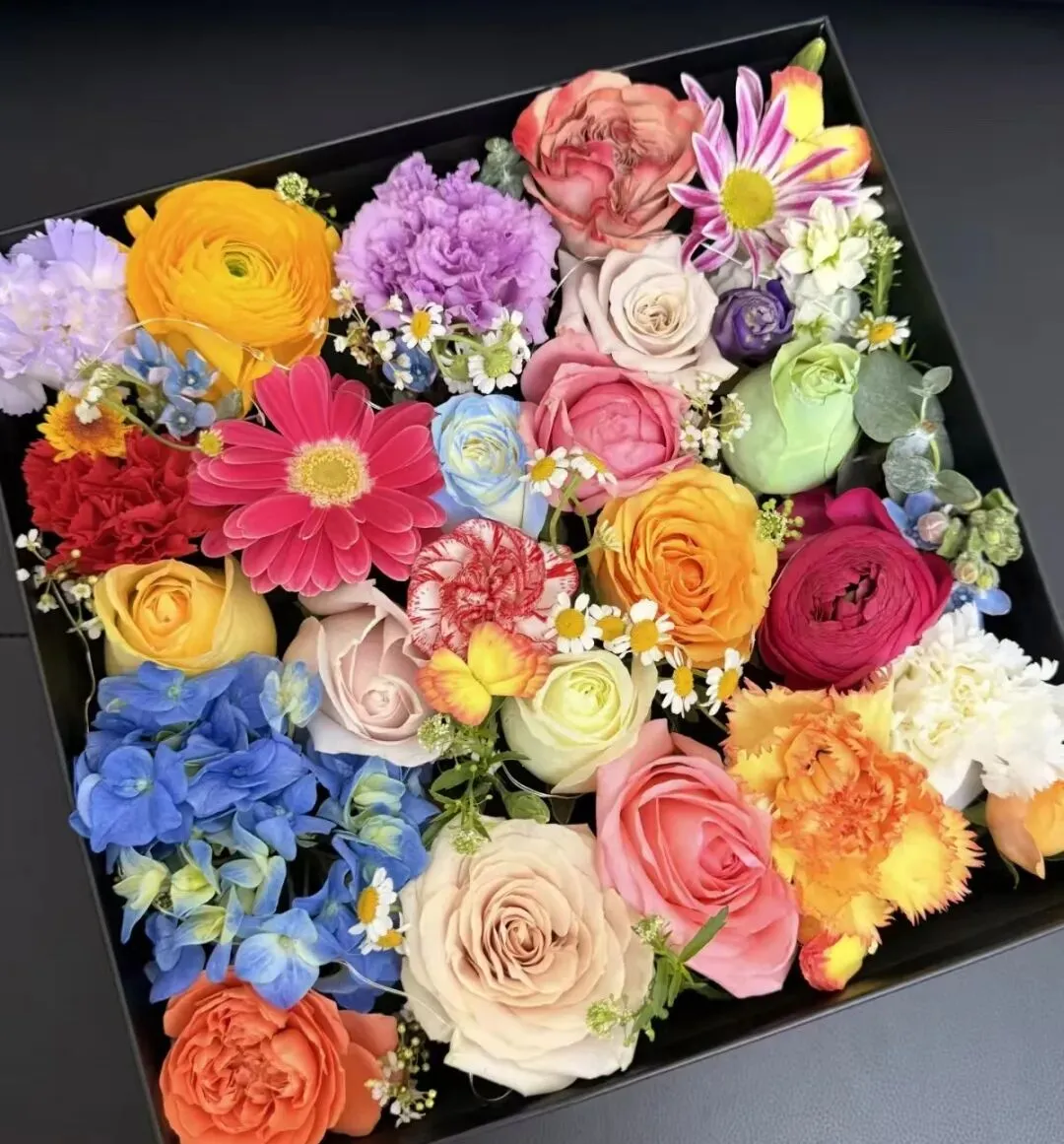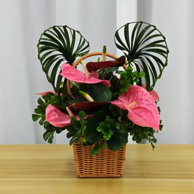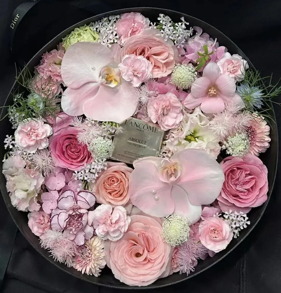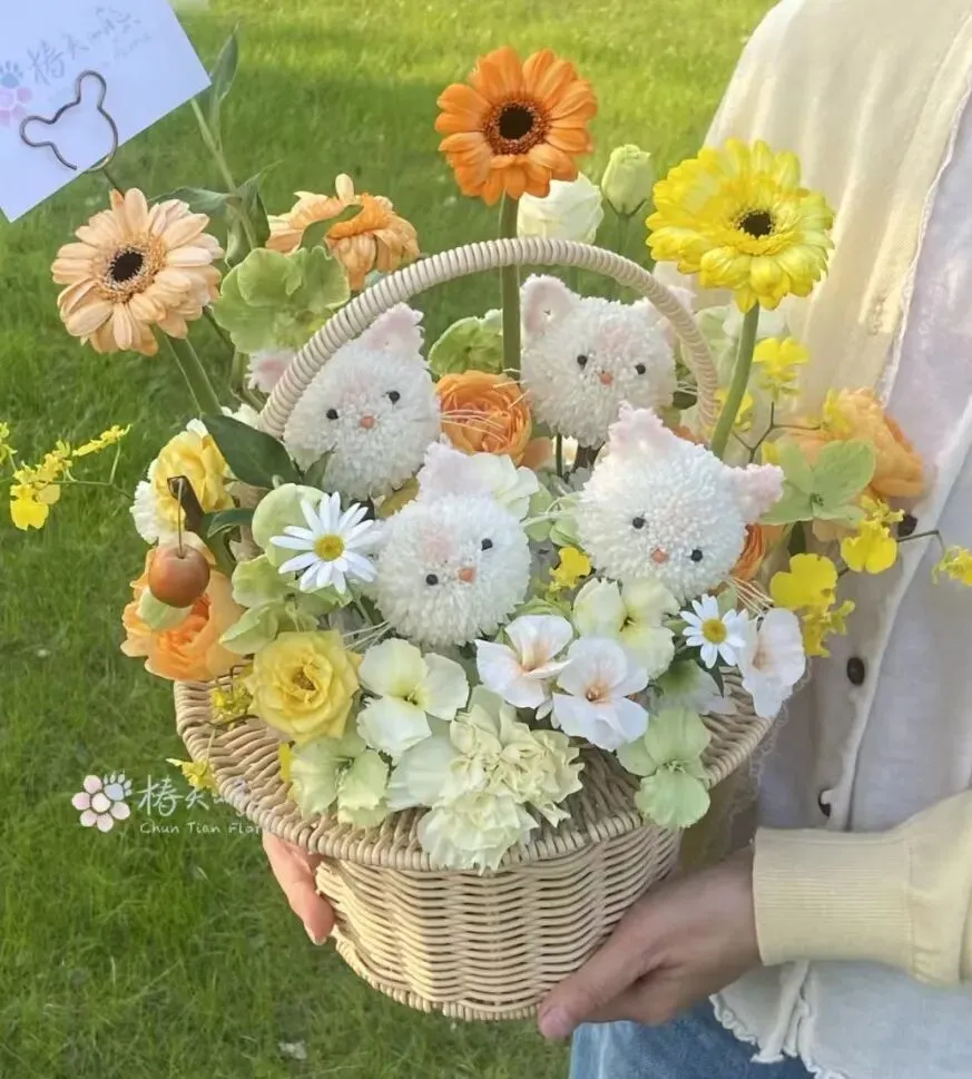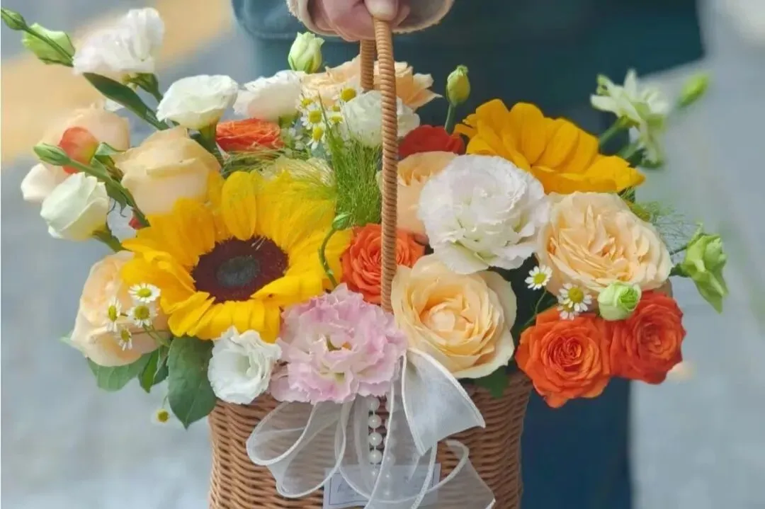 错落有致的花材搭配精致花篮,藏着“被时光温柔以待”的美好期许,亲手搭配,每一朵花都藏着专属心意,仪式感拉满。