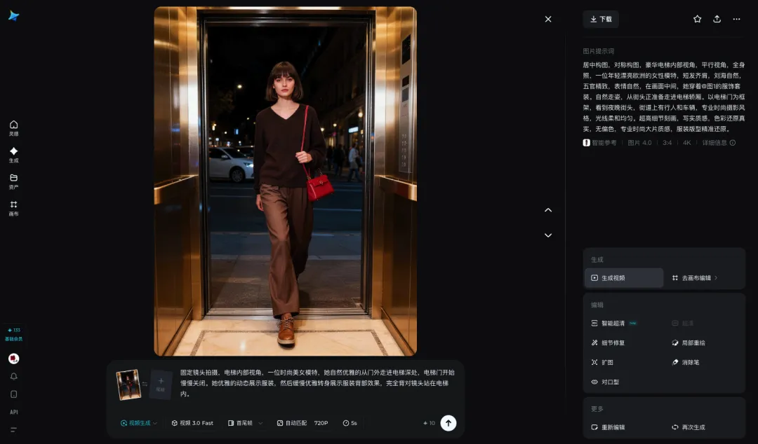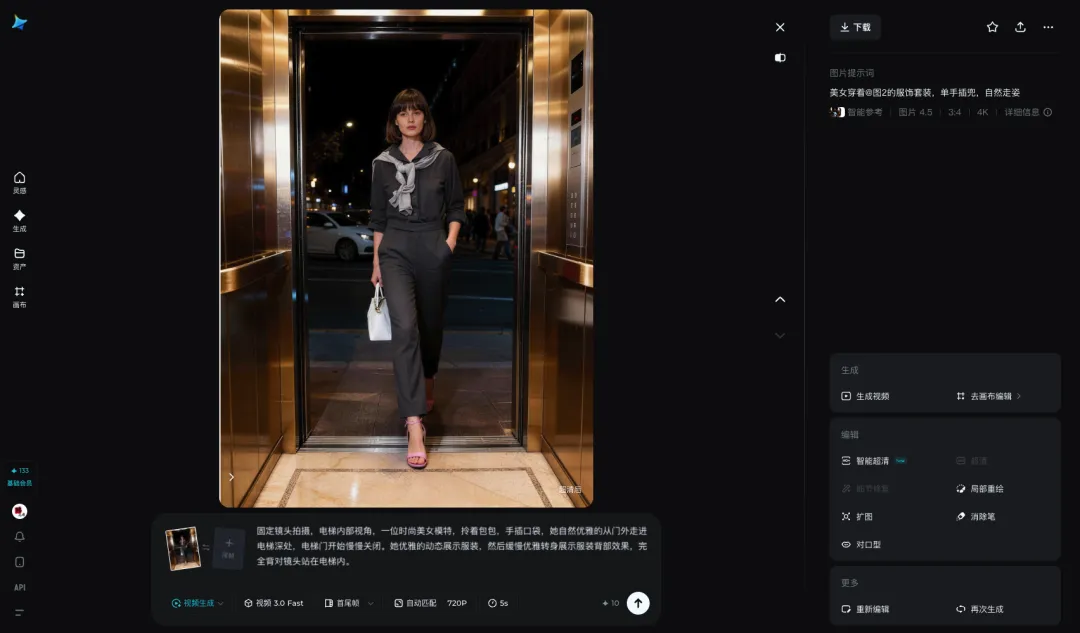 为了让大家少走弯路,我调试了一整晚,给大家总结了这一套详细步骤的“AI电梯时装秀完整流程”,下面我们进入正题。只需要4个步骤,带你10分钟搞定全部流程。