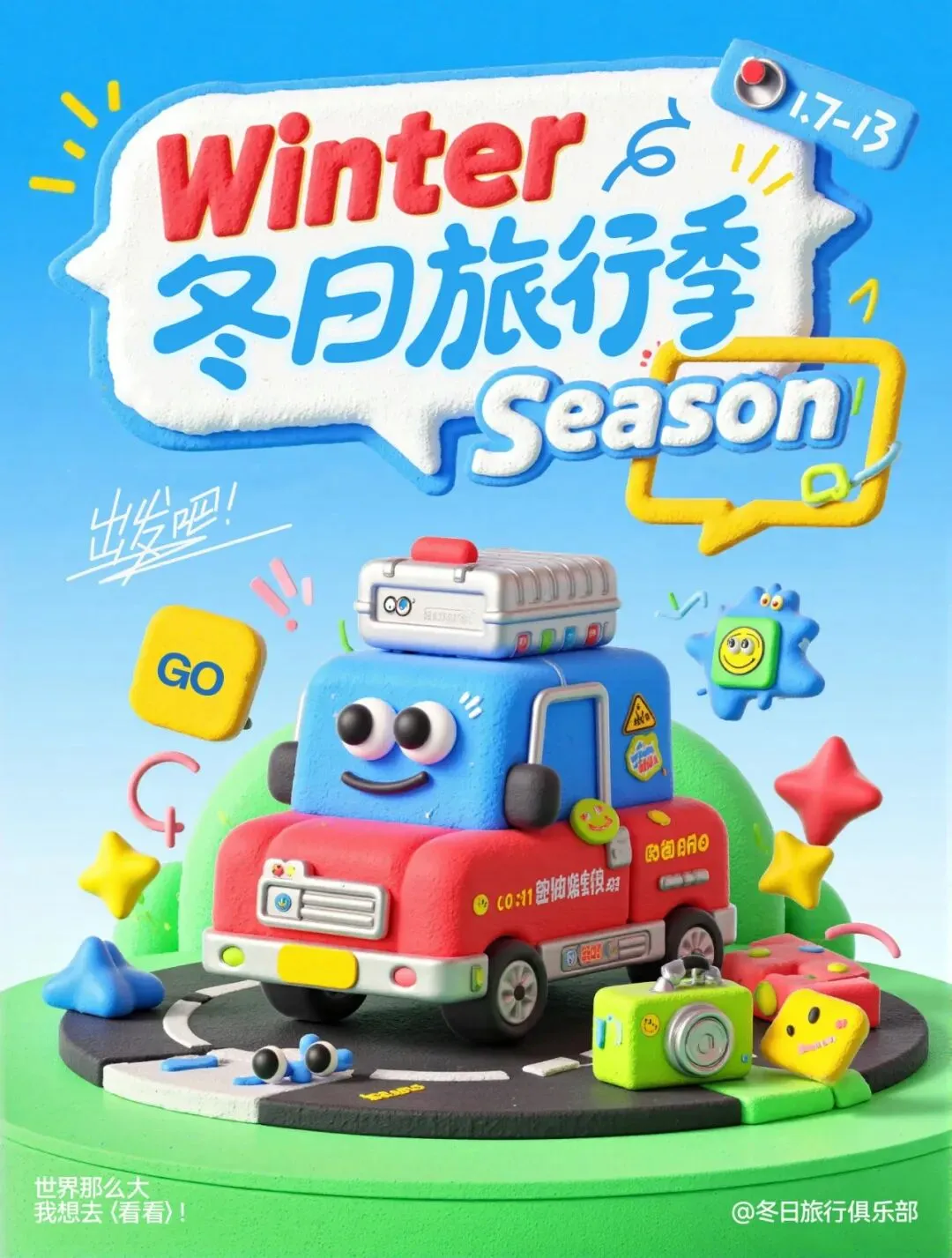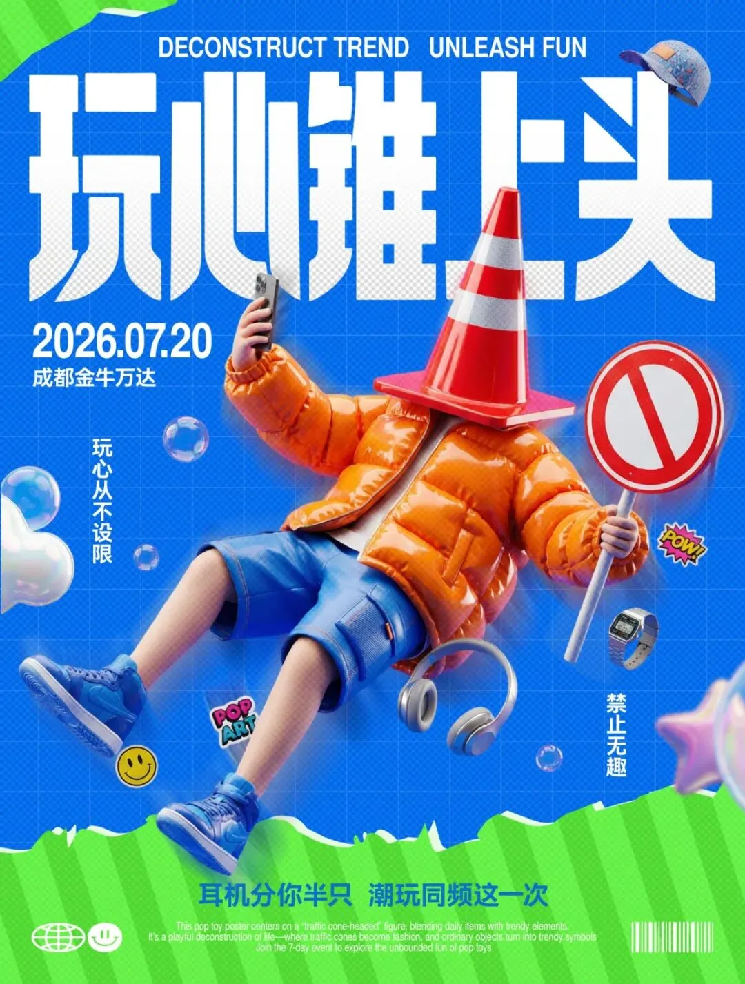 是的,这些立体风格的海报设计,压根没用到3D软件,全都是AI完成的主元素。