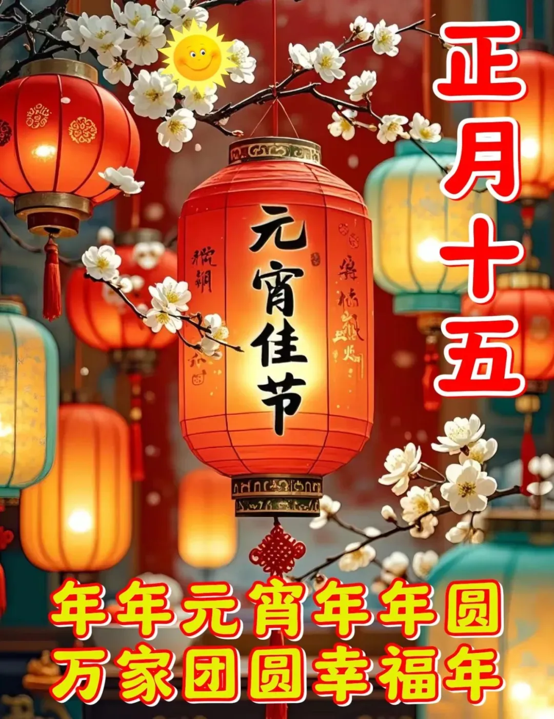 8. 过年好🎉,元宵到,幸幸福福一年绕🥰;过年好,元宵到,开开心心四季妙😄;过年好,元宵到,顺顺利利全家好🙌;过年好,元宵到,团团圆圆过元宵👨‍👩‍👧‍👦!