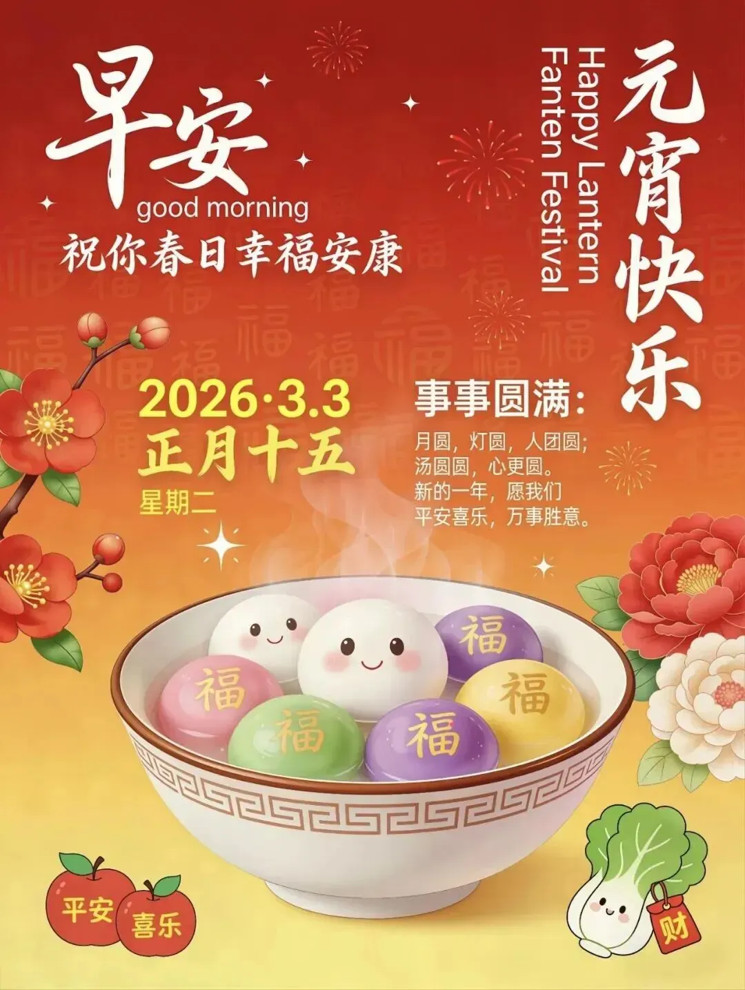 当前位置:首页>美女资讯>2026年3月3日周二早安图片,正月十五元宵节祝福吉祥图片大全