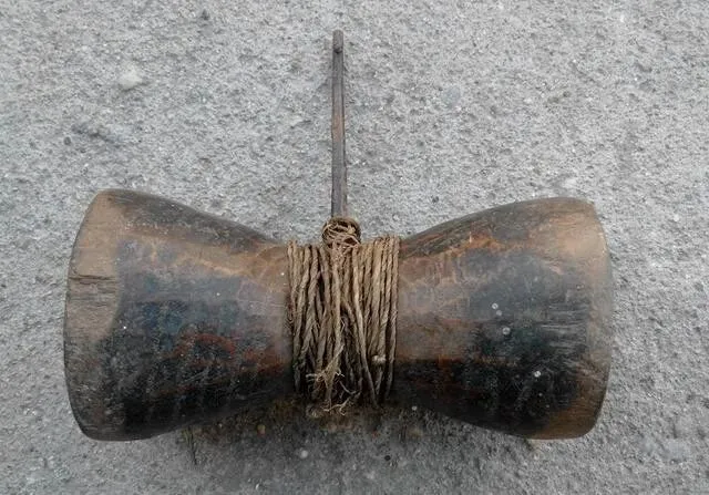 拨锤子 , 搓麻绳专用的。 小时候晚上全家围一块儿 , 手里转着它搓绳子 , 因为第二天打苇泊要用 , 现搓来不及。 苘麻泡好 , 外皮撕下来 , 一圈一圈攆上去 , 那个手感 , 现在闭眼还记得...