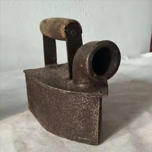 那时候的熨斗 , 肚子里塞木炭 , 烧热了熨衣裳。 五六十年代家家都这么干 , 到七八十年代才换上电的。