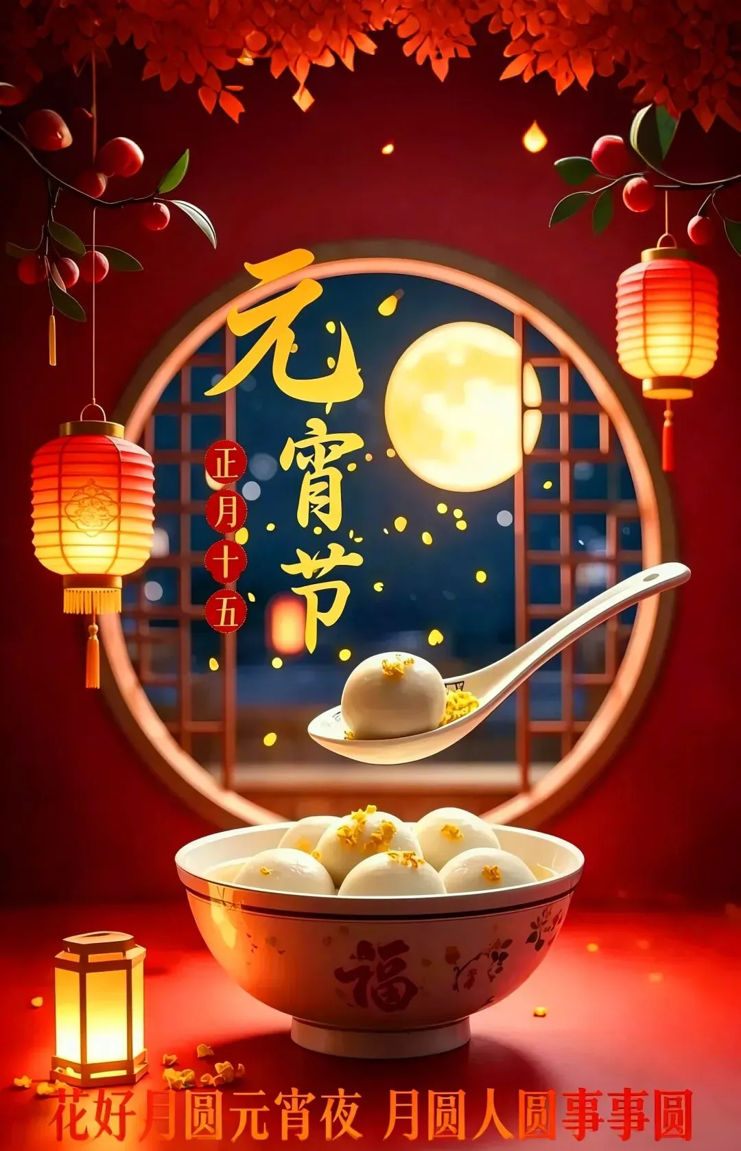 元宵节快乐,月圆人团圆,元宵甜心间,愿您在这个温馨的夜晚,与家人相伴,欢声笑语,共度美好时光,新的一年,诸事顺遂,福满家门!