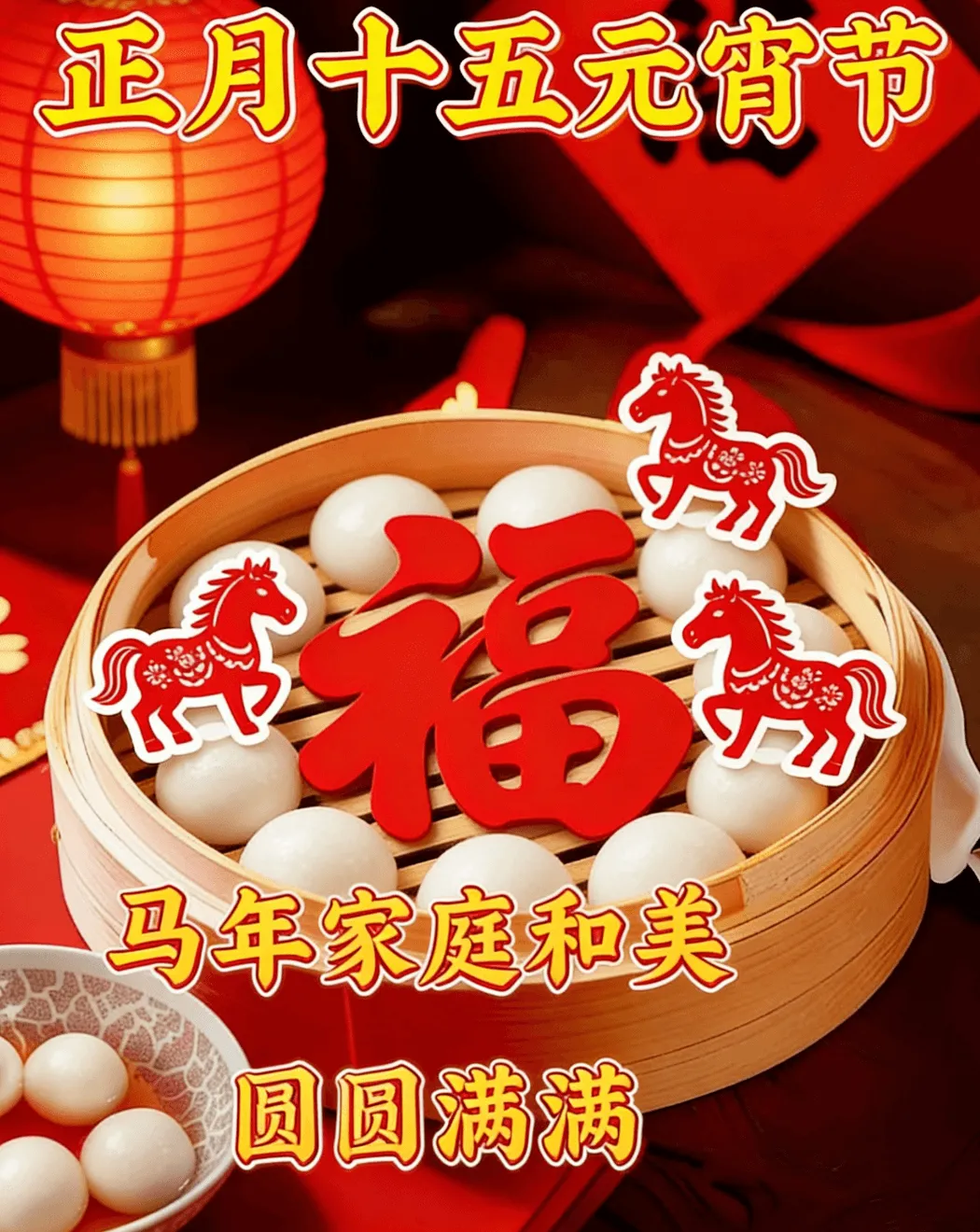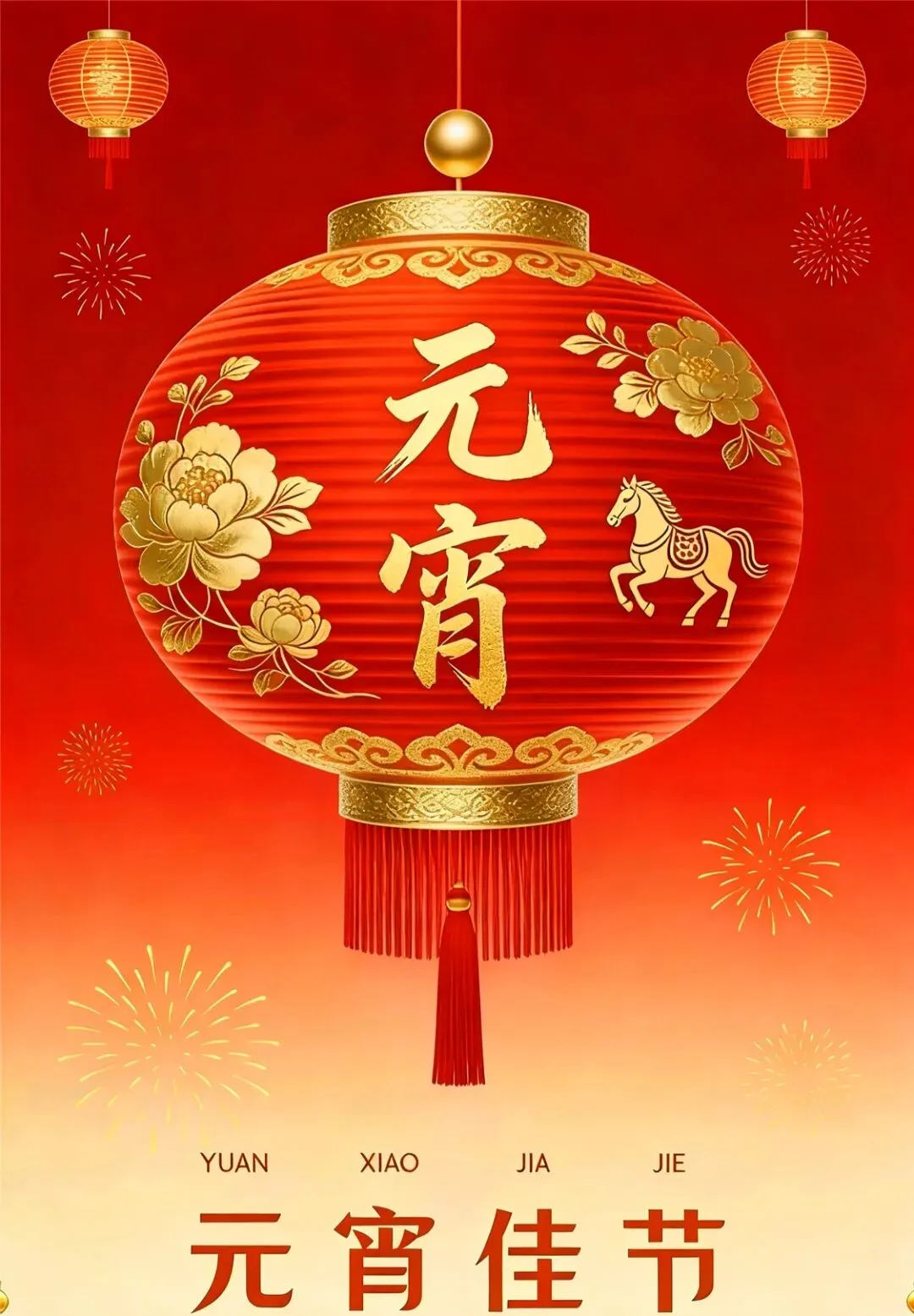 灯火映万家,团圆共此时,2026丙午马年,值此元宵佳节,祝您:月圆、灯圆、人团圆;家福、国福、年年福,元宵快乐,阖家安康!
