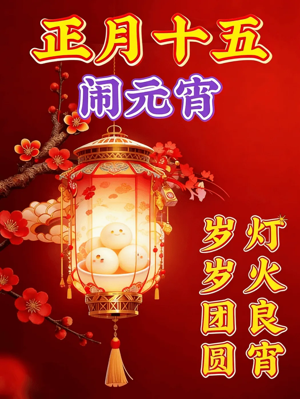 元宵元宵,祸患全消,祝你,祝我,祝我们,没灾,没祸,顺顺利利,愿你新一年,马到成功,福气满门,三餐四季皆温柔,岁岁年年皆平安!