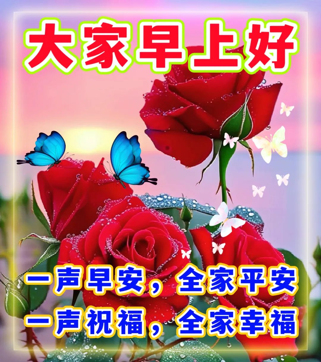 晨露,凝聚深深的情意;清风,舞动快乐的心曲;花儿,绽放久违的笑意;河流,是你幸福的汇聚;阳光,将心灵的阴影掠去。祝你永远快乐如意,大家早上好!早餐愉快~🌹❤️🙂🤝🌺🎉