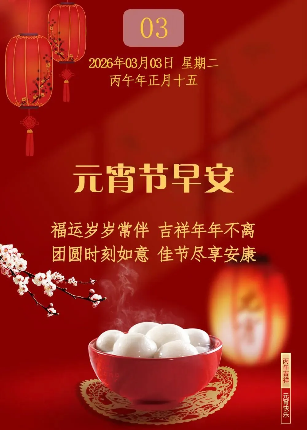 当前位置:首页>美女资讯>早安日历 | 今天是2026年3月3日星期二农历正月十五元宵节,节日快乐!高清壁纸~