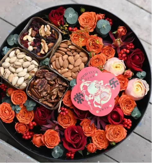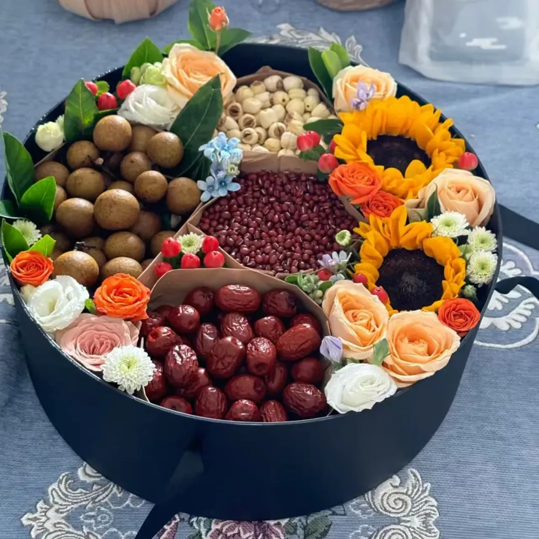 鲜花干果礼盒授课内容:本课程以“自然与艺术的融合”为核心,教授学员如何将干果与新鲜花材巧妙搭配,通过礼盒包装打造高颜值礼物。课程涵盖花艺设计基础(色彩搭配、层次构建)、引导学员发挥创意,将礼盒拆解后可作为食材,兼顾审美与实用性。