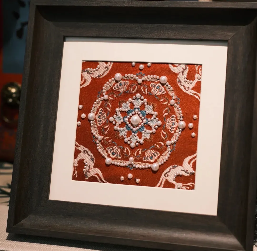 宋锦珍珠画授课内容:锦纹样蕴含着“四通八达,富贵吉祥”等美好祝愿。珍珠象征圆满,纯洁与高贵,讲解宋代花道"四艺"文化。