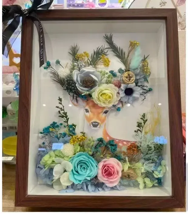 1.永生/干花 花相框摆件授课内容:永生花的制作工艺、花艺色彩搭配技巧、制作技巧。