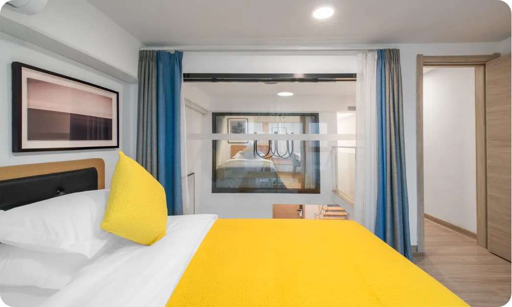 房间面积约48-55平米,复式两房1,5米床+1.2米床