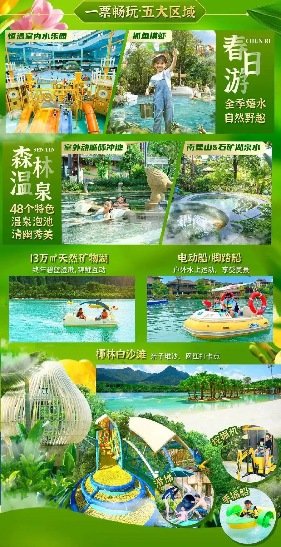 全季原生态 30万㎡的「嬉水温泉乐园」50+水上游玩项目 | 五大区域森林温泉区、古海森林区、抓鱼摸虾区、