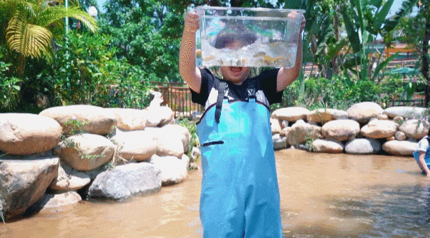 小溪里的鱼类很多,抓到的鱼虾可以通通带回家哦。
