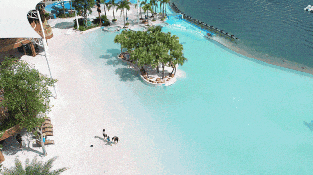 除此之外还有无边际泳池、椰林白沙滩等